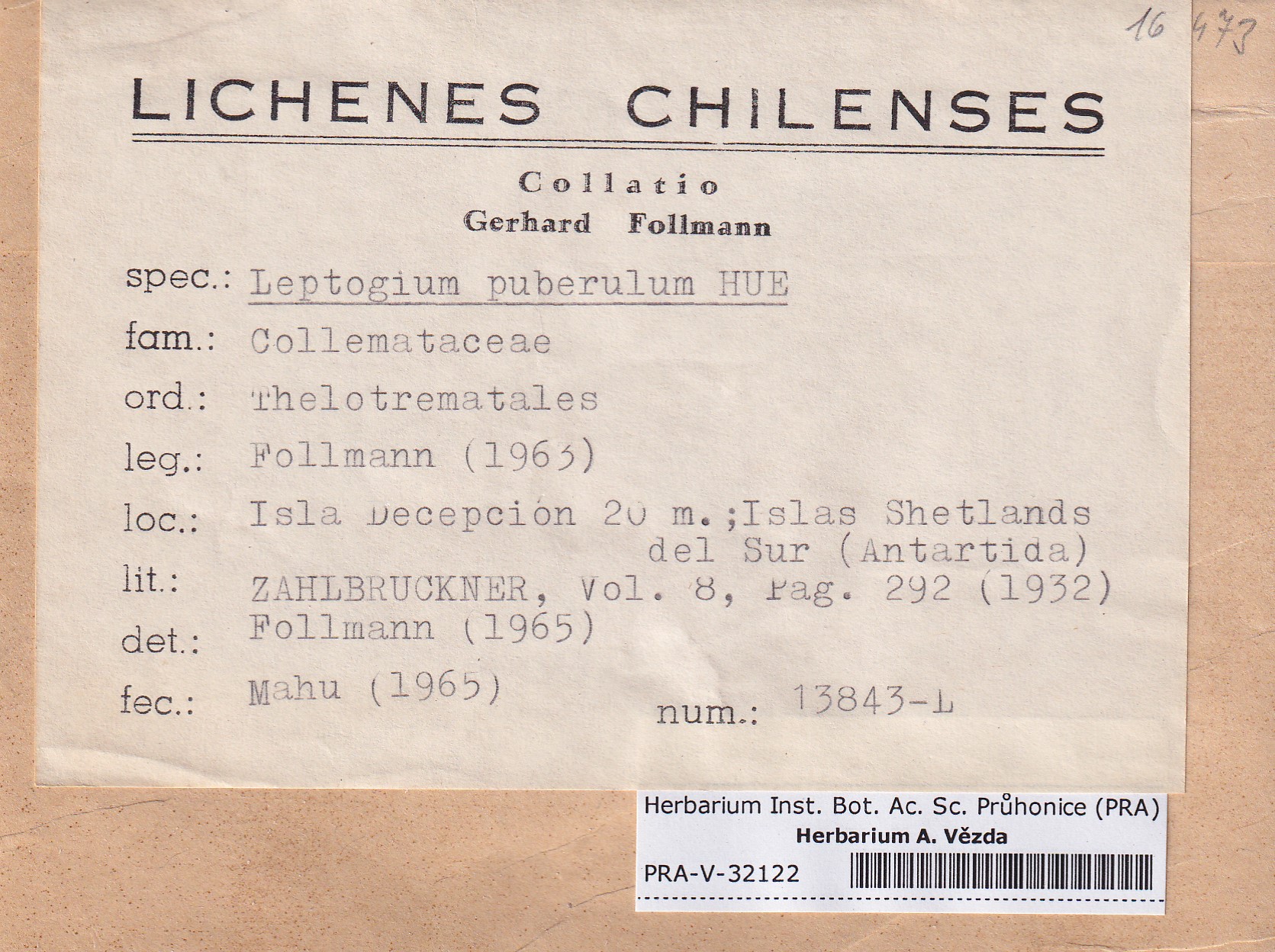 - Deposited in parcel no. 118 Leptogium O-Y