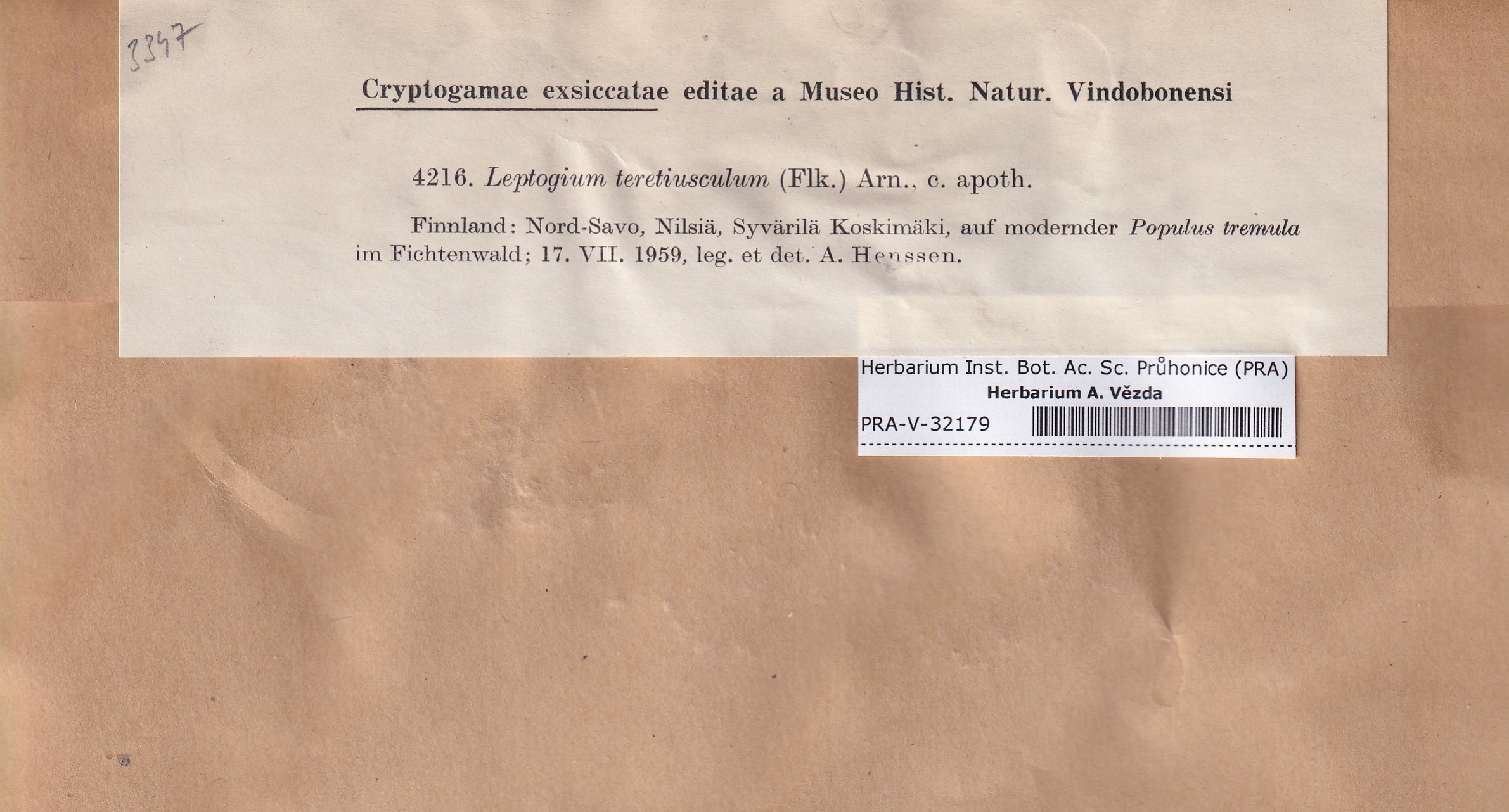 - Deposited in parcel no. 118 Leptogium O-Y