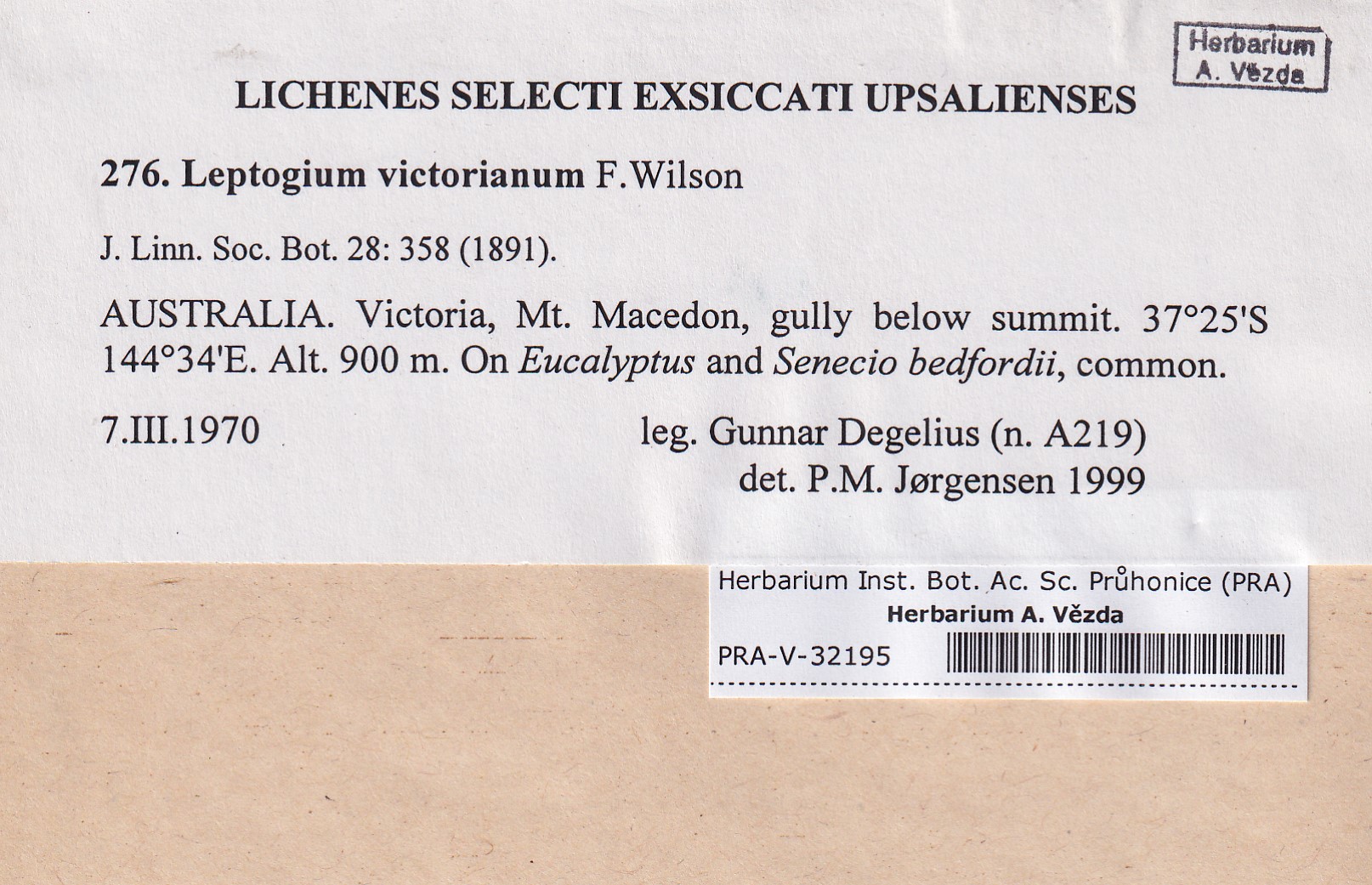 - Deposited in parcel no. 118 Leptogium O-Y