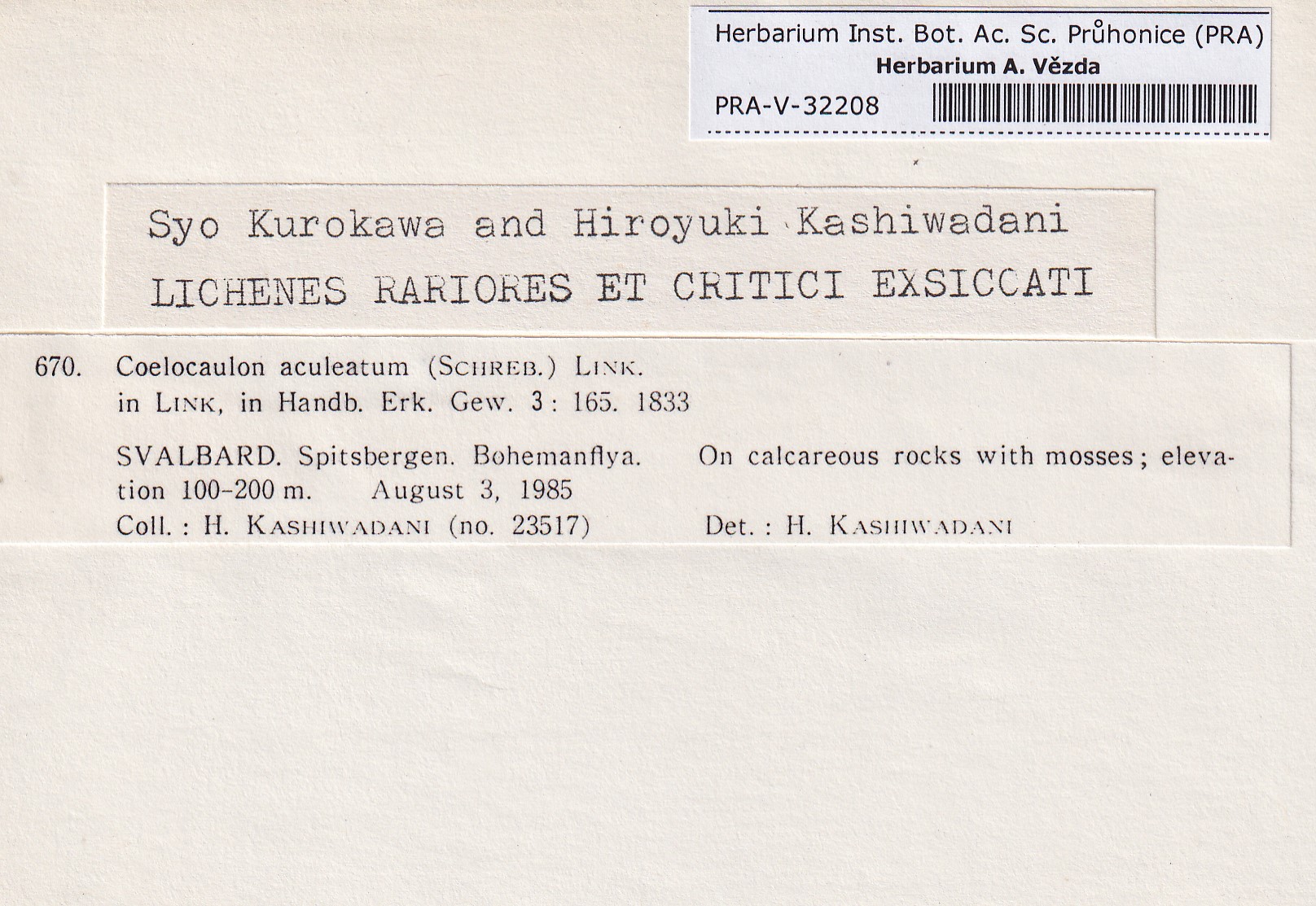 - Kurokawa & Kashiwadani, Lich. Rar. Crit. Exs.
