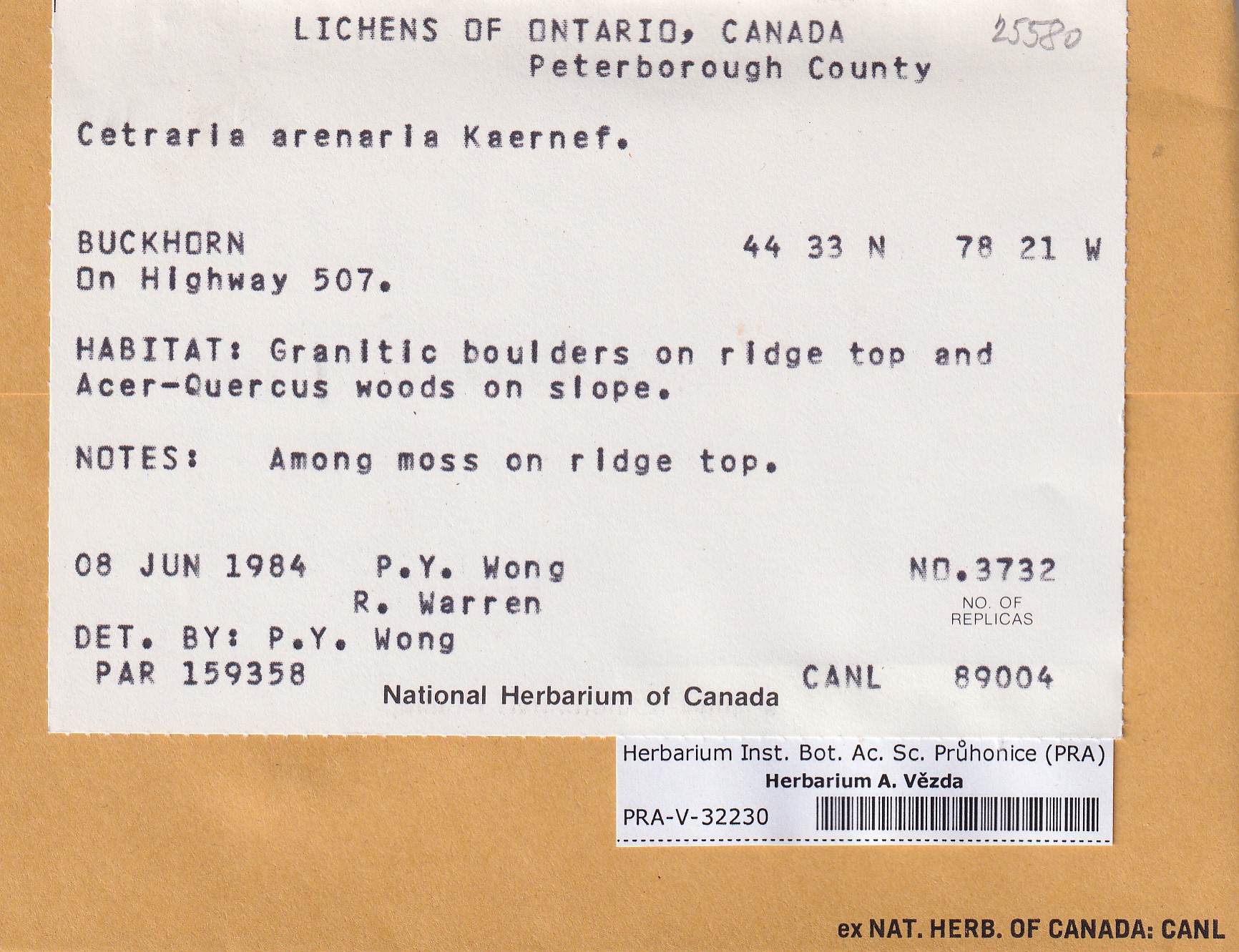 - Deposited in parcel no. 119 Cetraria A-D