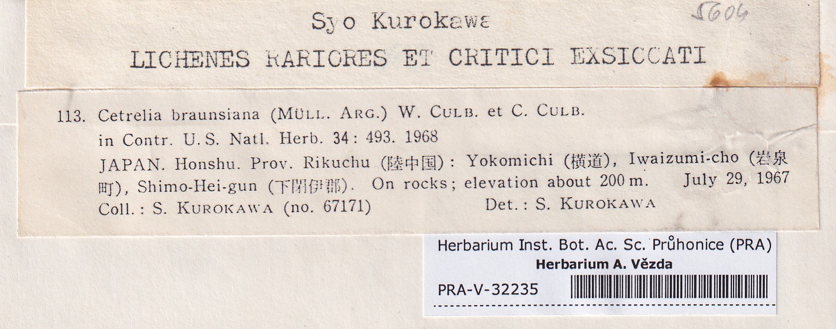 - Kurokawa, Lich. Rar. Crit. Exs.