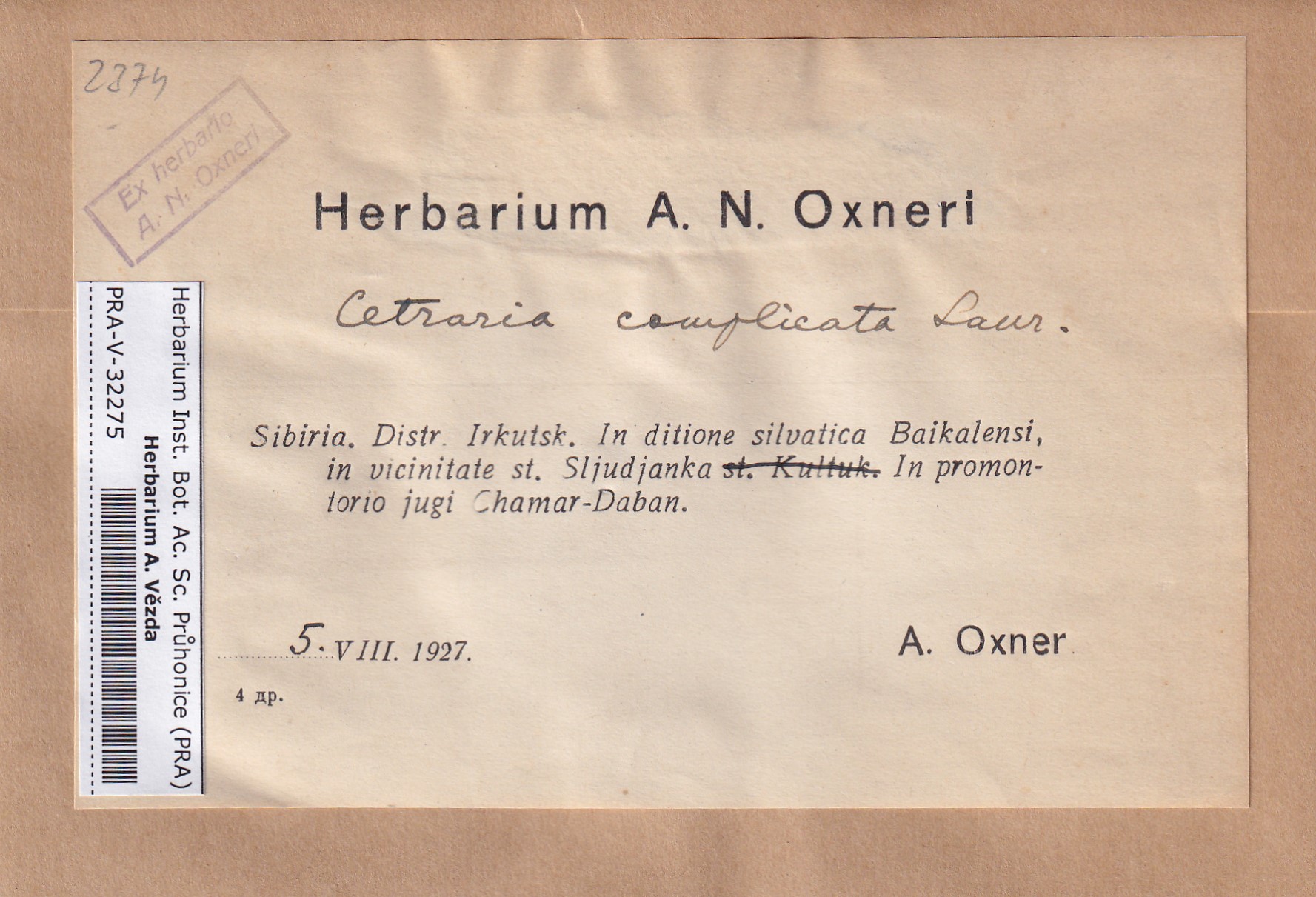 - Deposited in parcel no. 119 Cetraria A-D