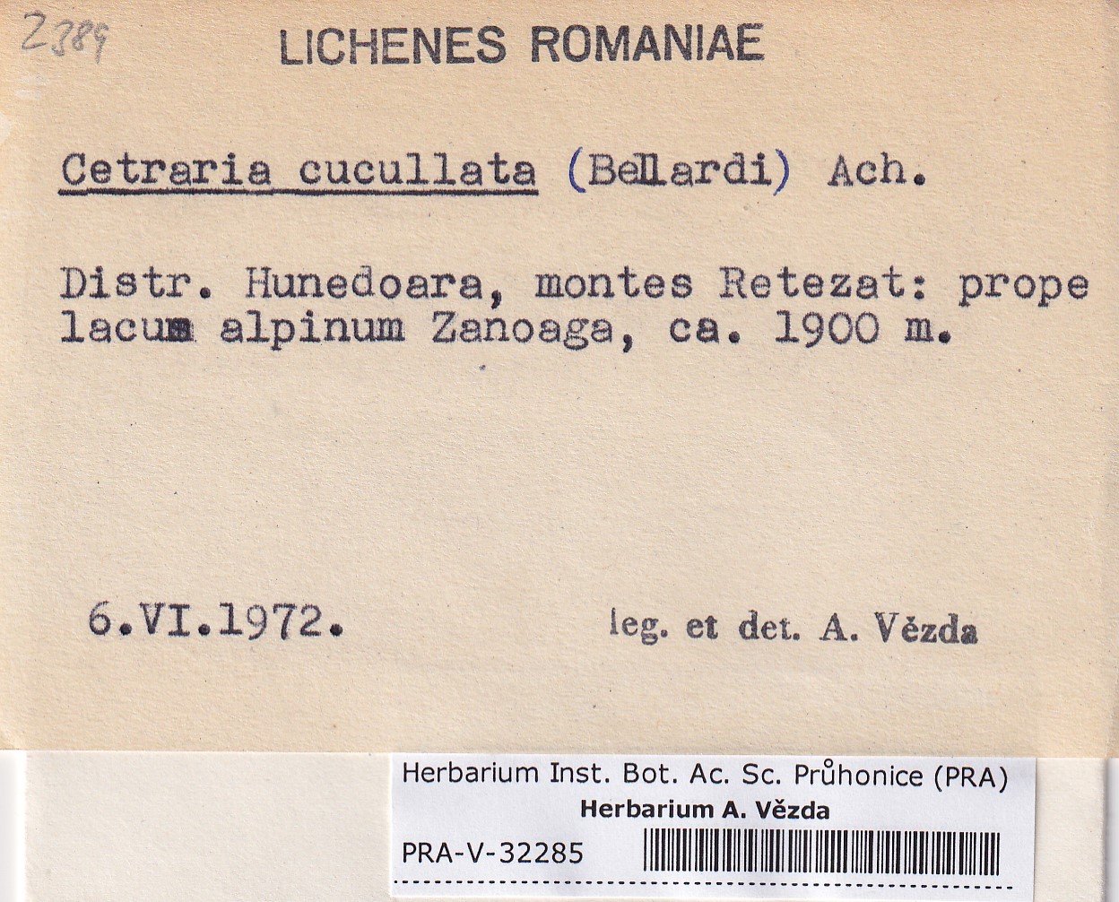 - Deposited in parcel no. 119 Cetraria A-D