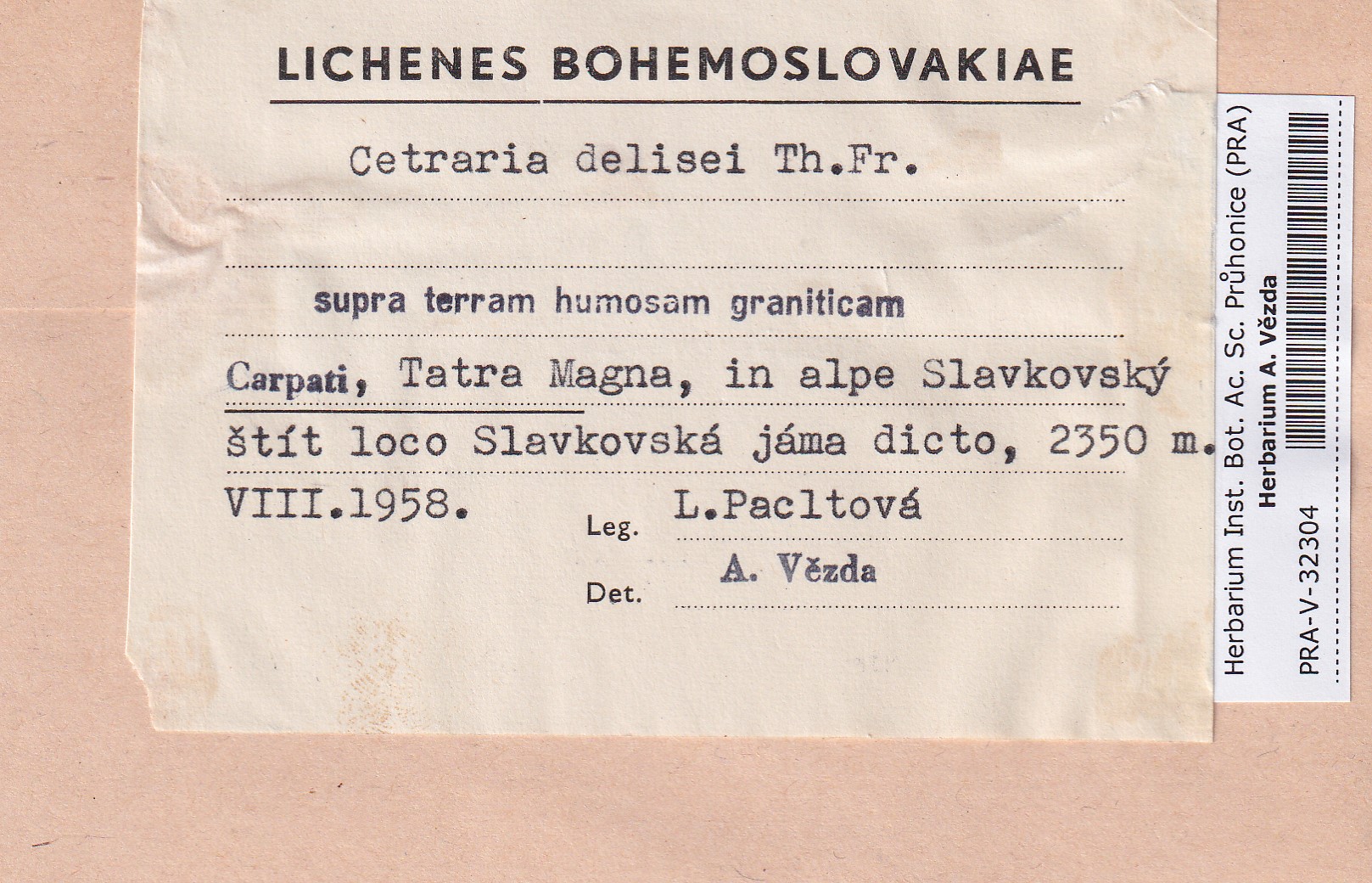- Deposited in parcel no. 119 Cetraria A-D