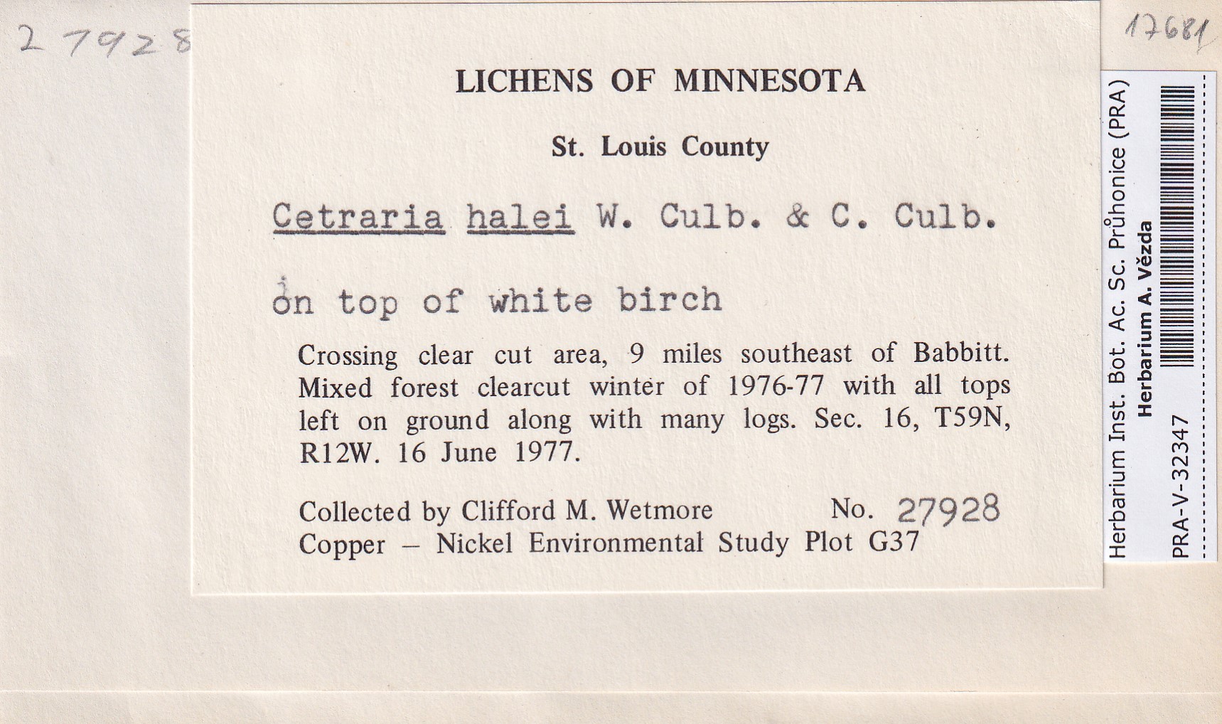 - Deposited in parcel no. 120 Cetraria E-J