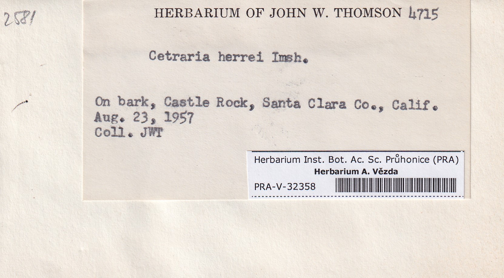 - Deposited in parcel no. 120 Cetraria E-J