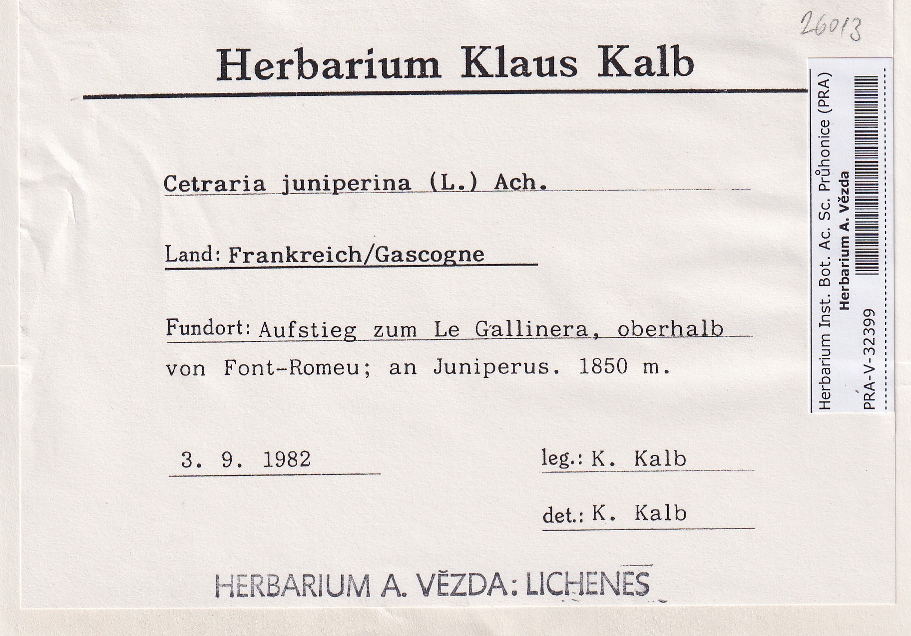 - Deposited in parcel no. 120 Cetraria E-J