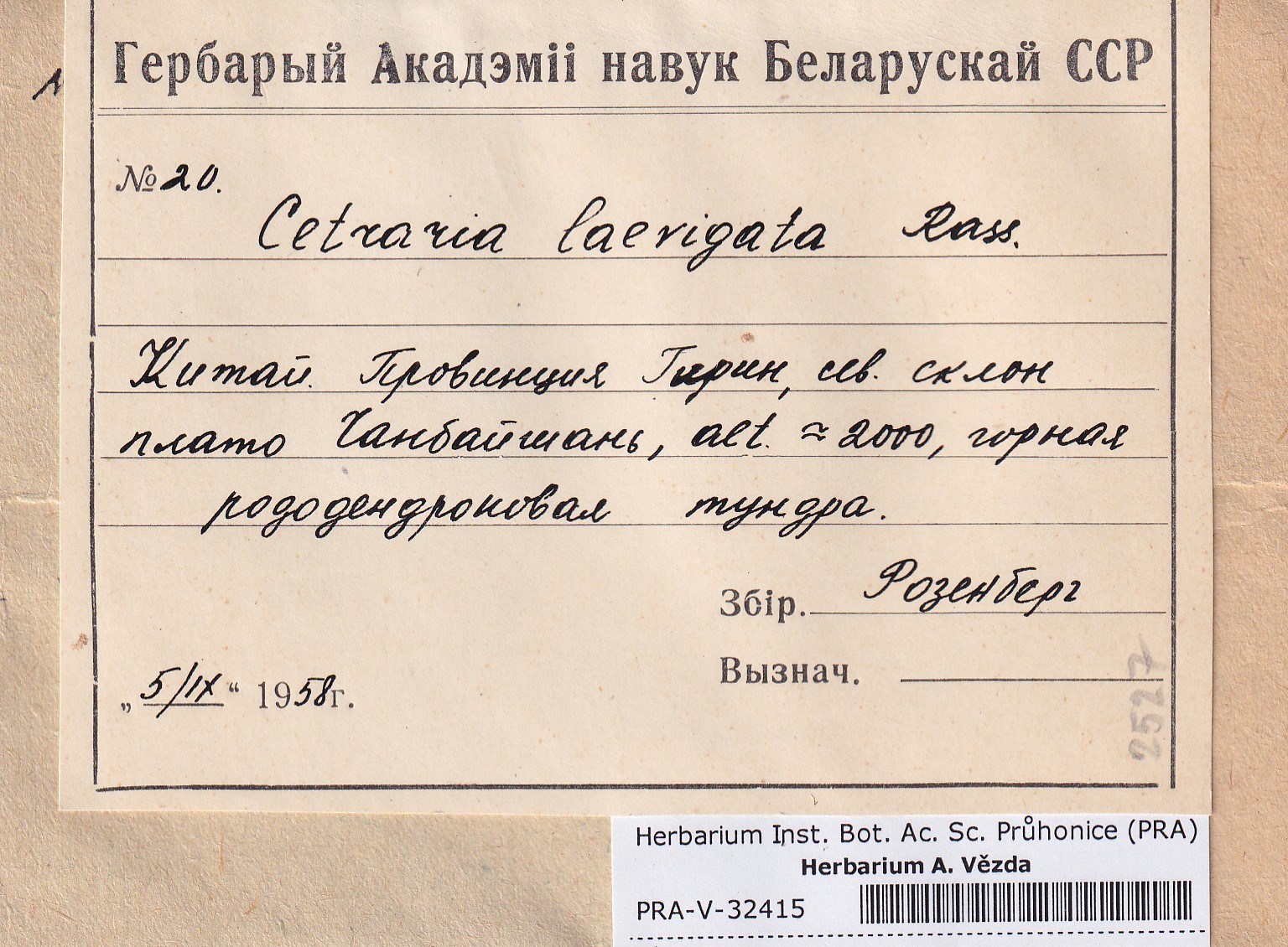 - Deposited in parcel no. 121b Cetraria K-Y
