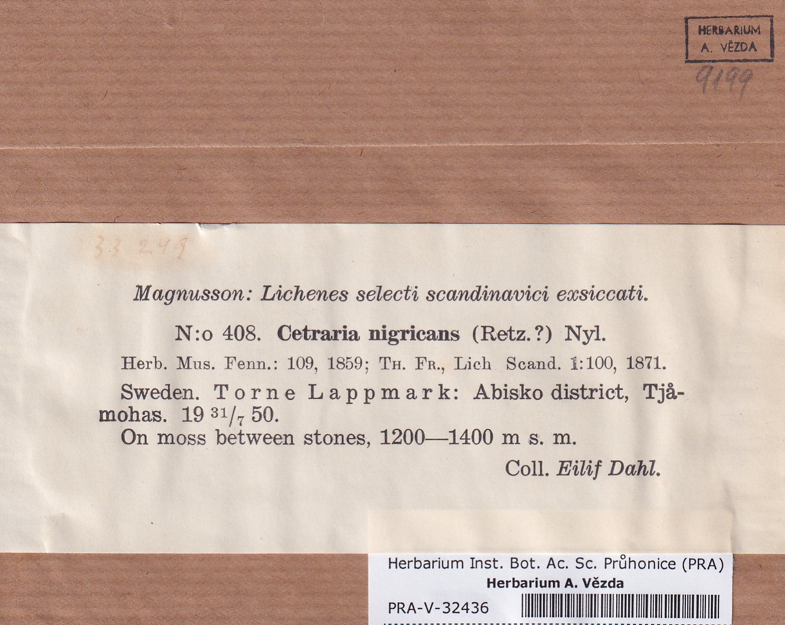 - Deposited in parcel no. 121b Cetraria K-Y
