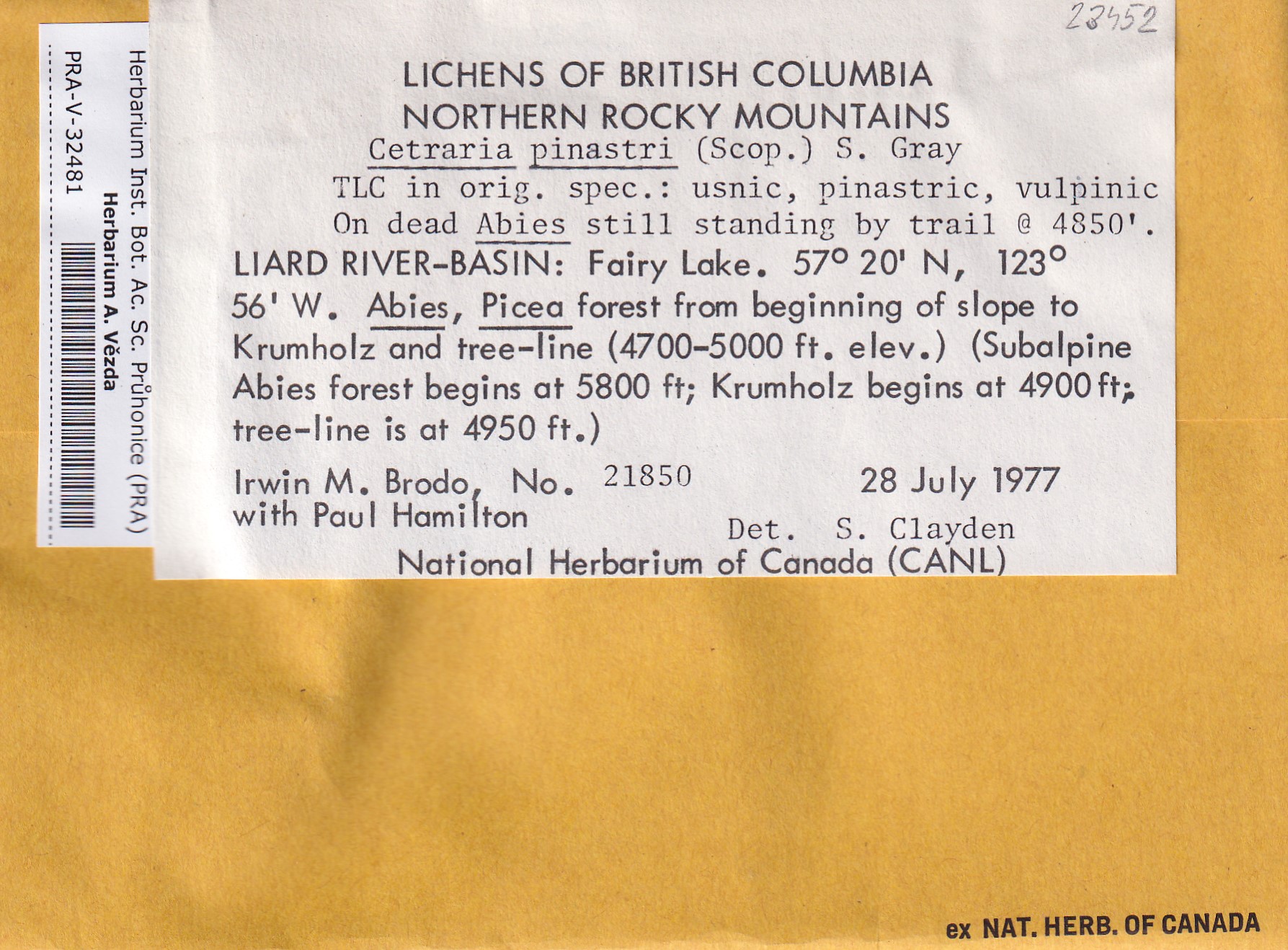 - Deposited in parcel no. 121b Cetraria K-Y