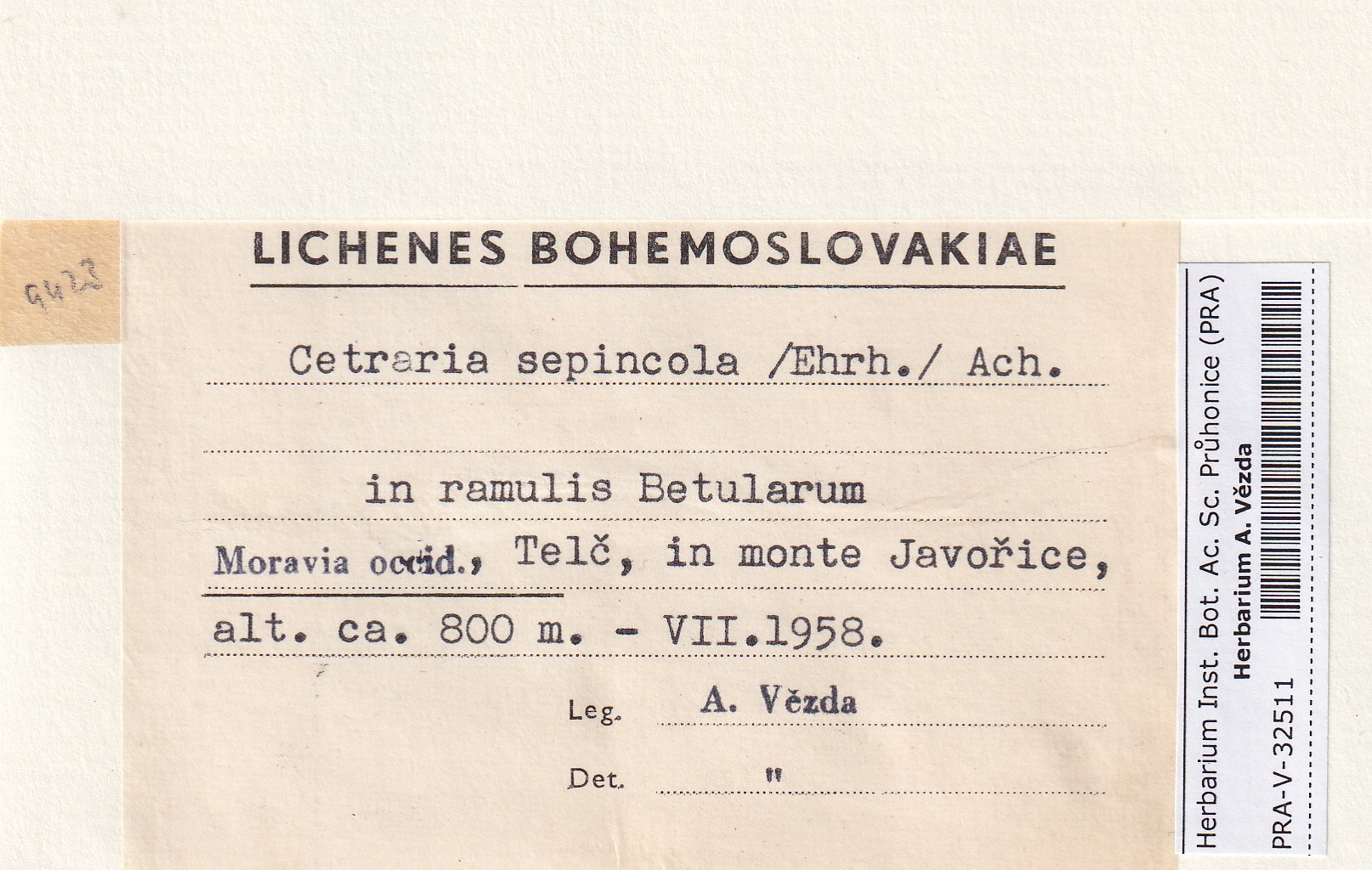- Deposited in parcel no. 121b Cetraria K-Y