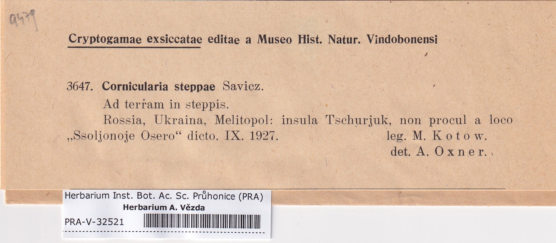 - Deposited in parcel no. 121b Cetraria K-Y