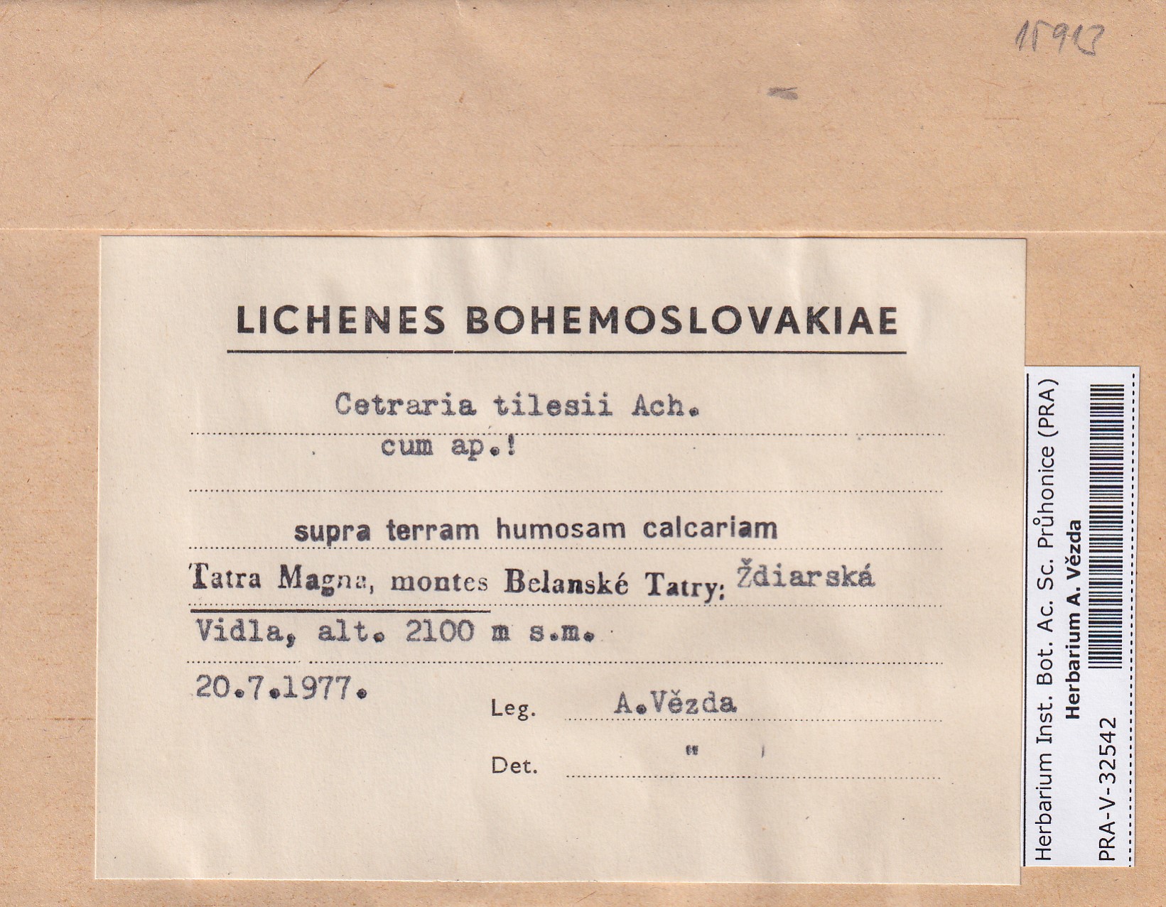 - Deposited in parcel no. 121b Cetraria K-Y