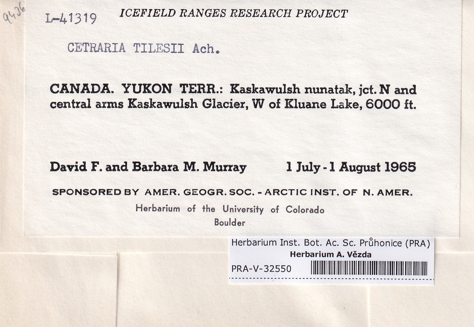- Deposited in parcel no. 121b Cetraria K-Y