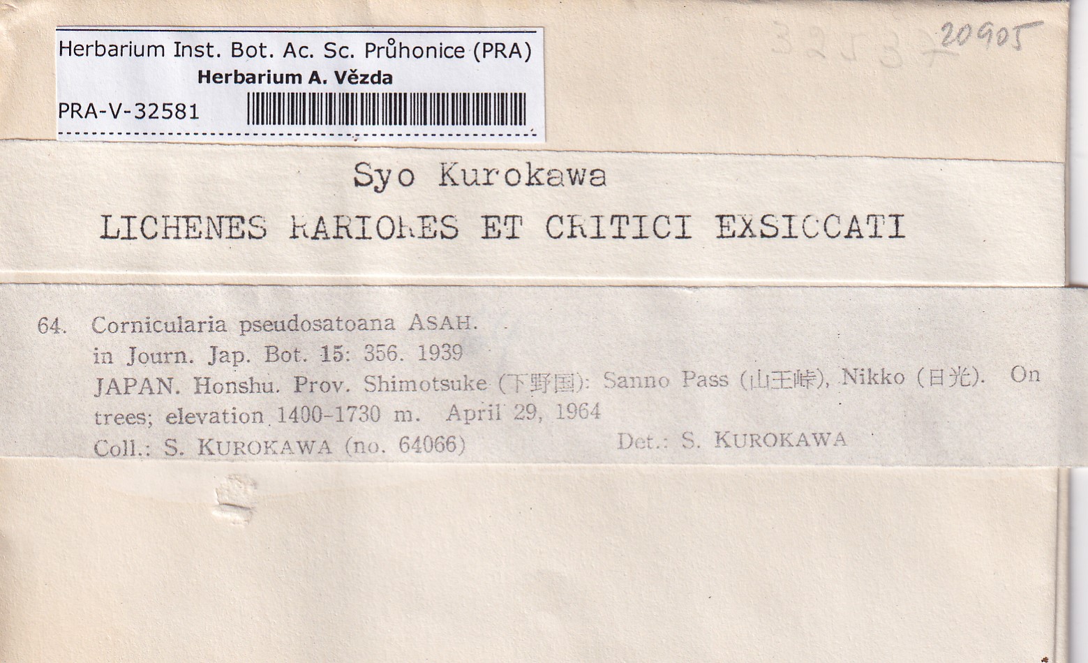 - Kurokawa, Lich. Rar. Crit. Exs.