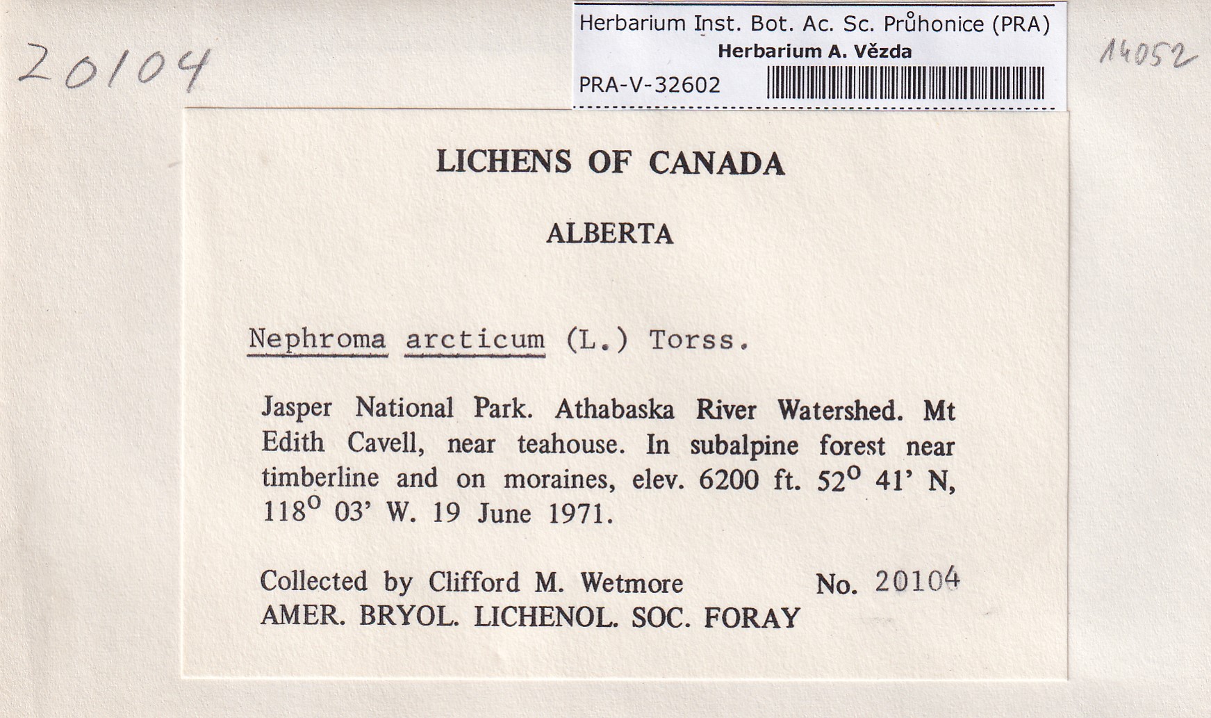 - Deposited in parcel no. 122b Asahinea,Nephromopsis,Nephroma