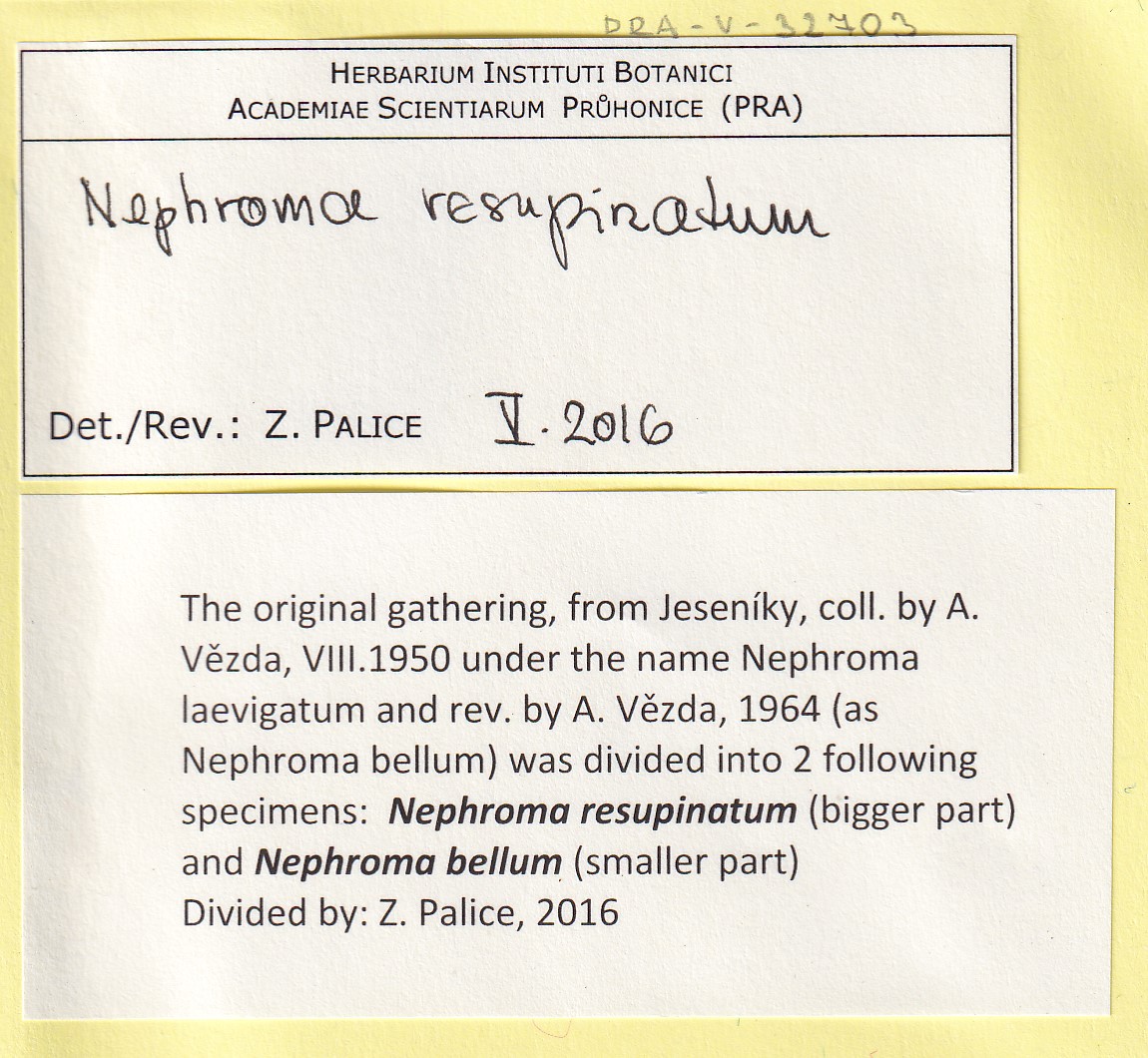 - Deposited in parcel no. 122b Asahinea,Nephromopsis,Nephroma