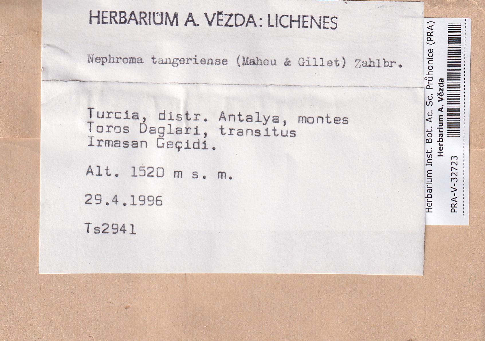 - Deposited in parcel no. 122b Asahinea,Nephromopsis,Nephroma