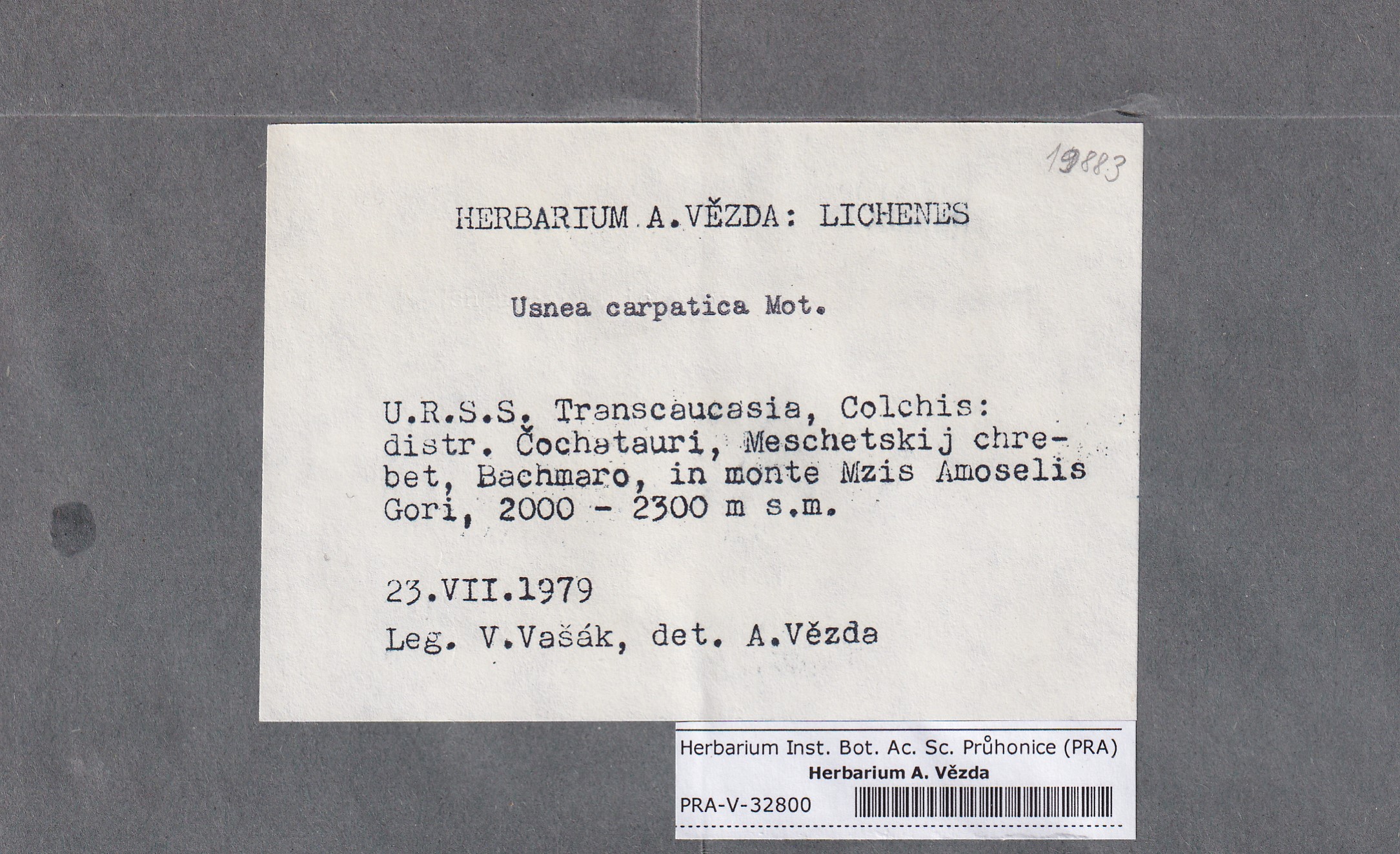 - Deposited in parcel no. 123 Usnea A-H