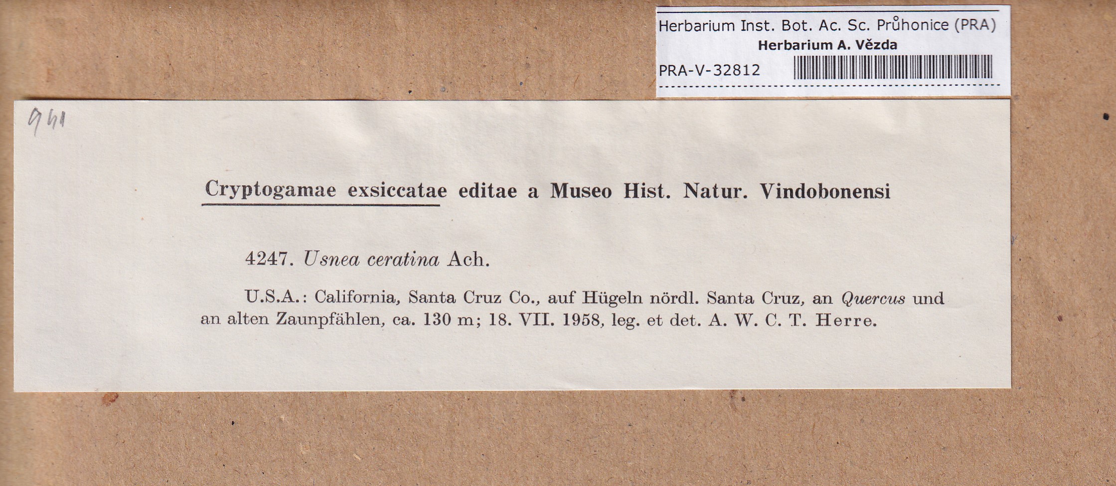 - Deposited in parcel no. 123 Usnea A-H