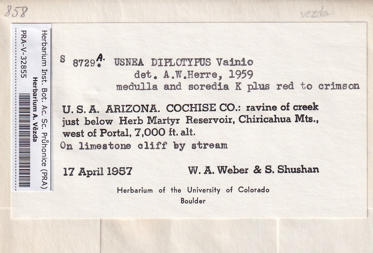 - Deposited in parcel no. 123 Usnea A-H