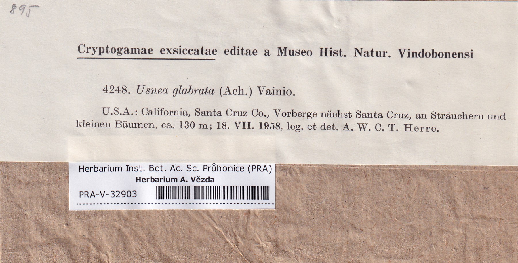 - Deposited in parcel no. 123 Usnea A-H