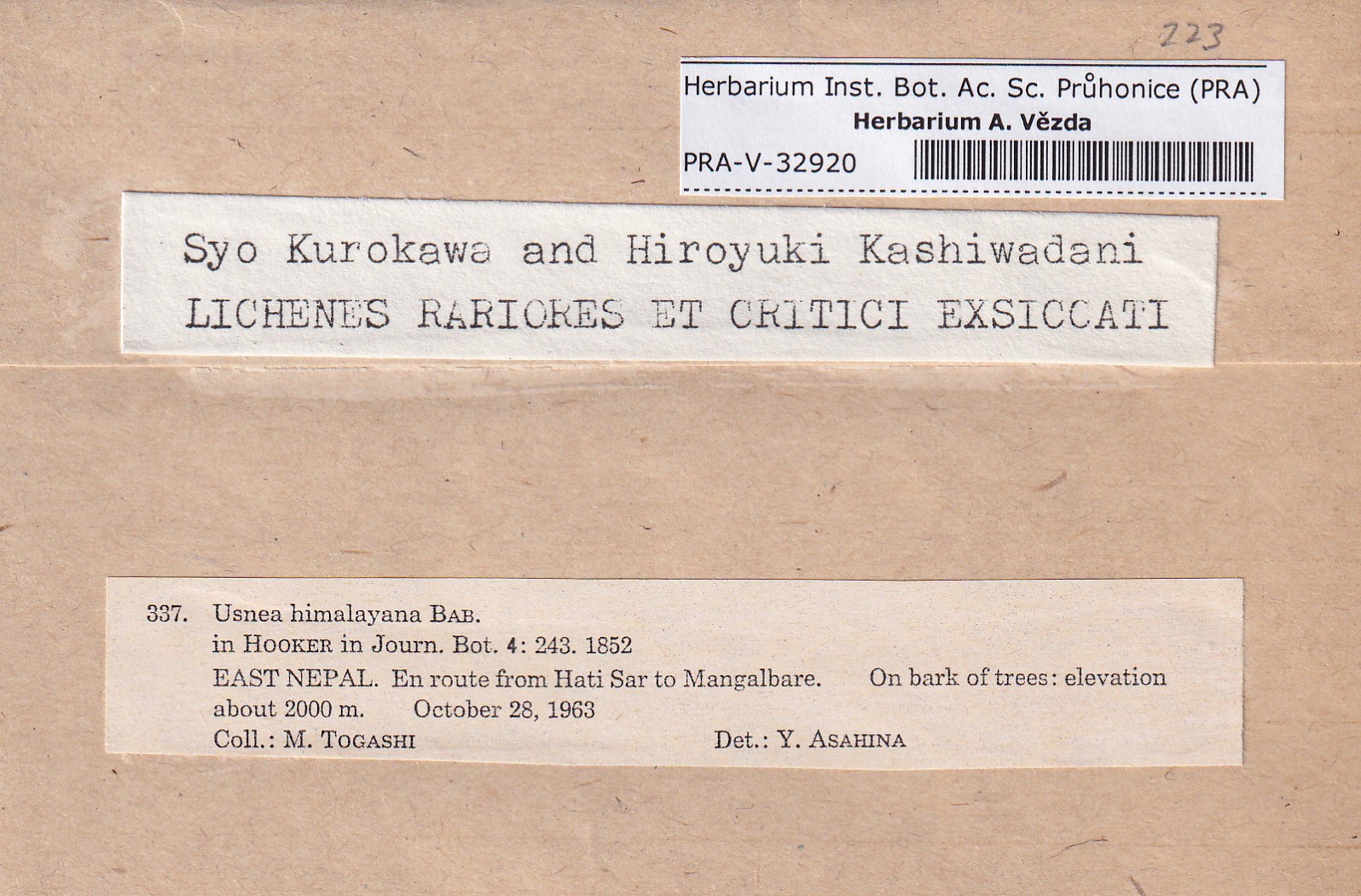 - Kurokawa & Kashiwadani, Lich. Rar. Crit. Exs.