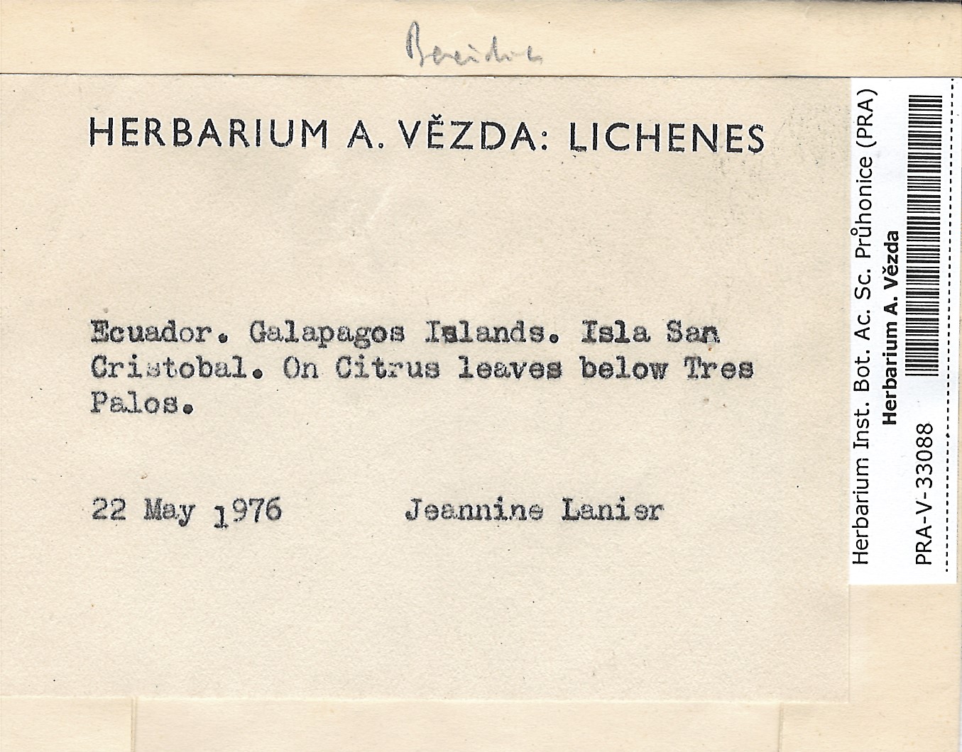 - Deposited in parcel Lichenes foliikoli Bacidia