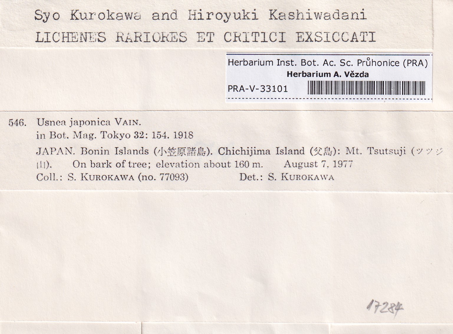 - Kurokawa & Kashiwadani, Lich. Rar. Crit. Exs.