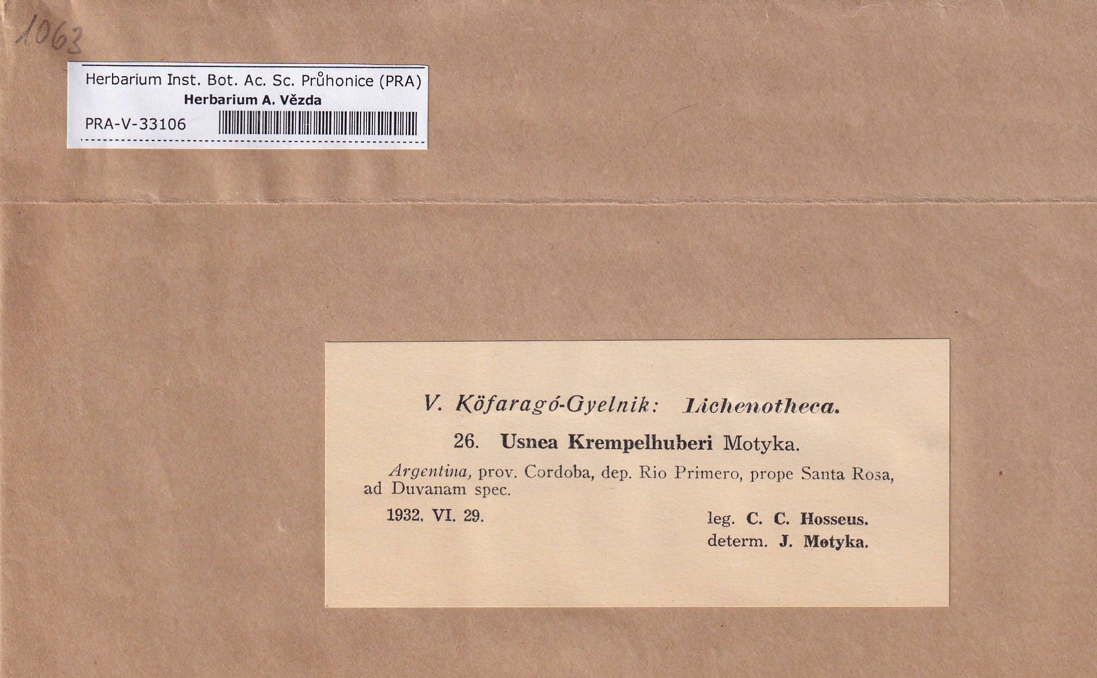 - Deposited in parcel no. 124 Usnea I-Y