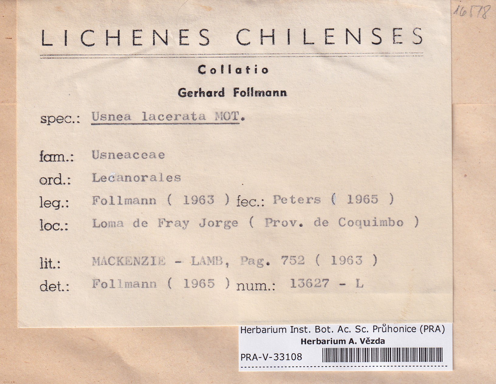 - Deposited in parcel no. 124 Usnea I-Y