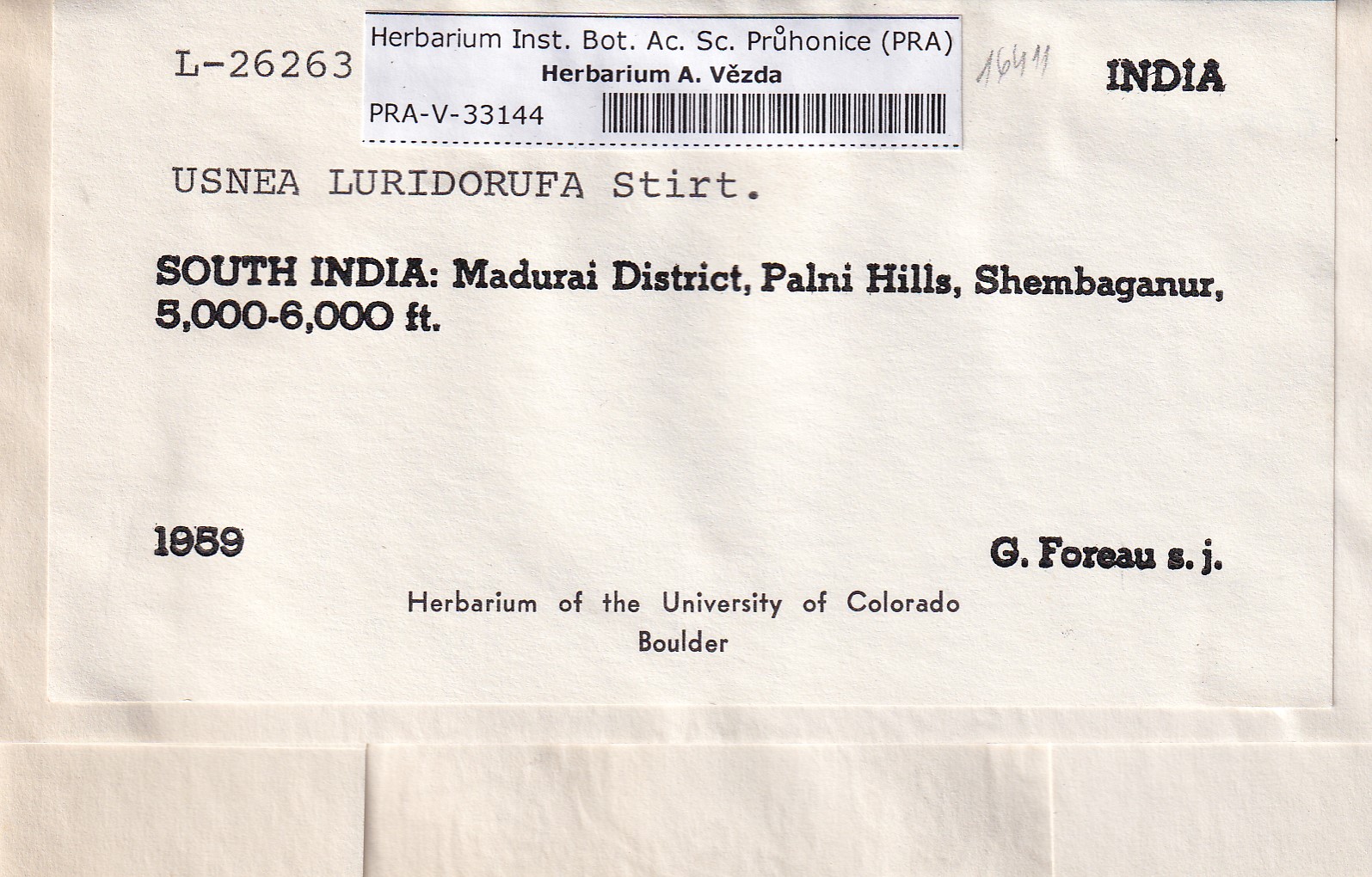 - Deposited in parcel no. 124 Usnea I-Y