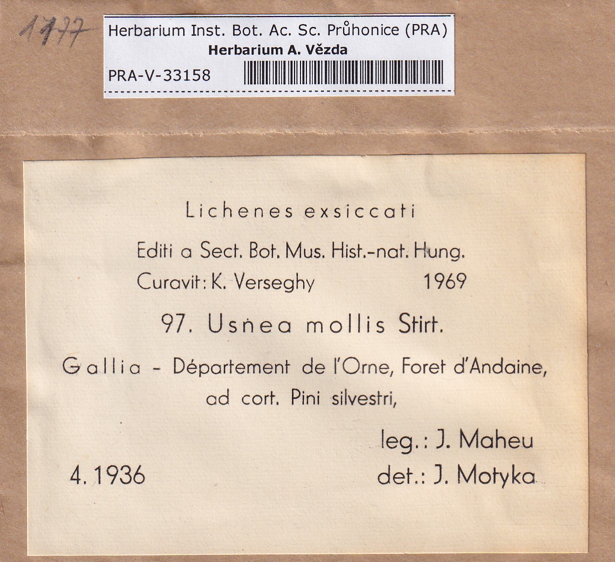 - Deposited in parcel no. 124 Usnea I-Y
