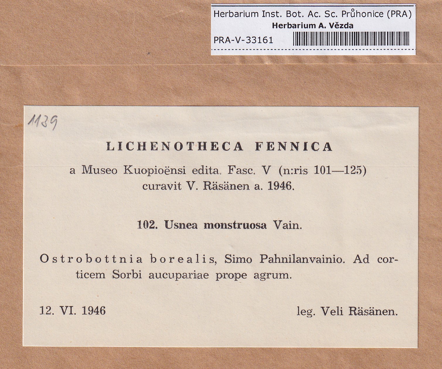 - Deposited in parcel no. 124 Usnea I-Y