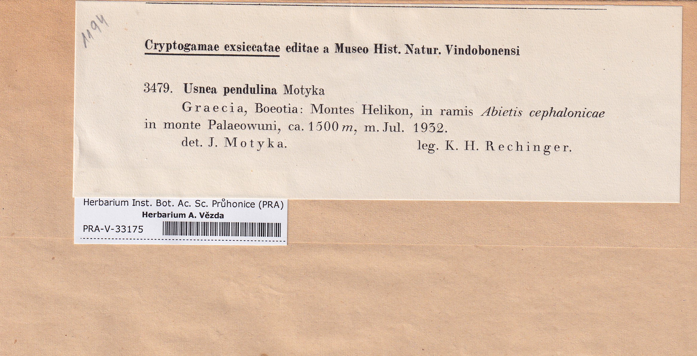 - Deposited in parcel no. 124 Usnea I-Y