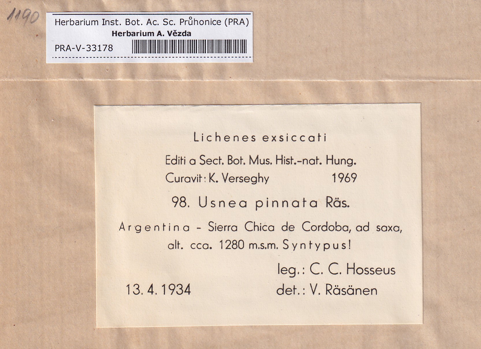- Deposited in parcel no. 124 Usnea I-Y