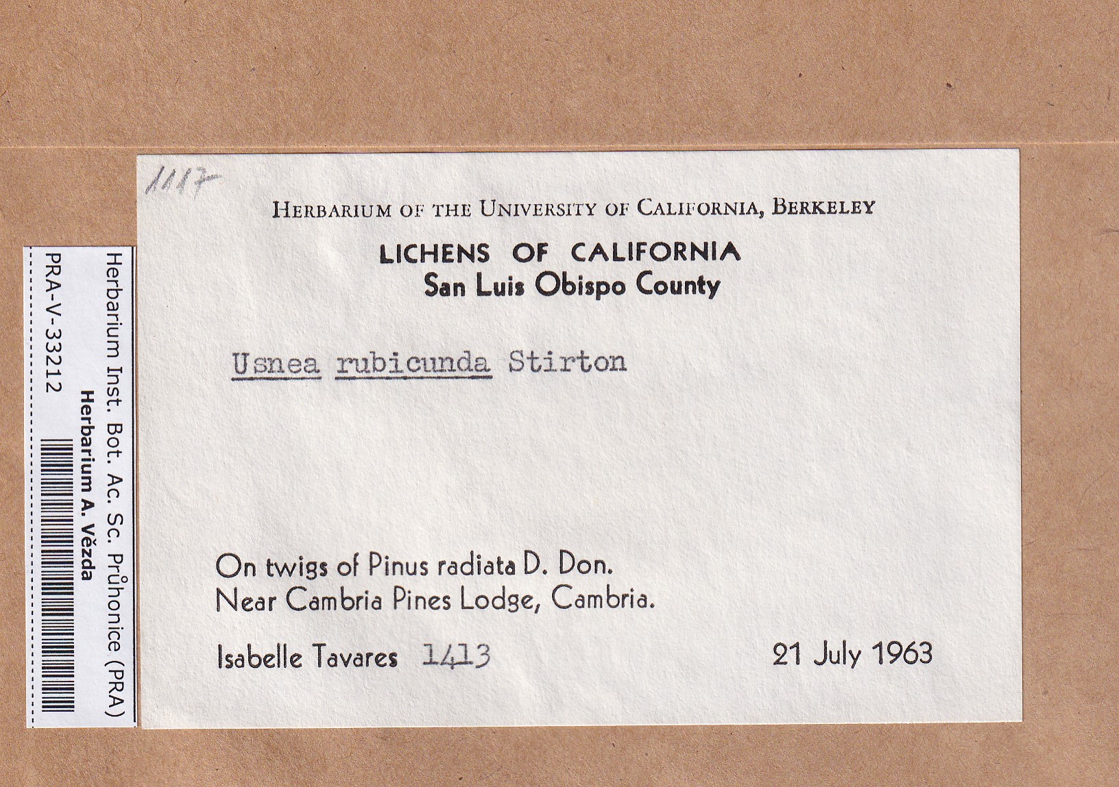 - Deposited in parcel no. 124 Usnea I-Y