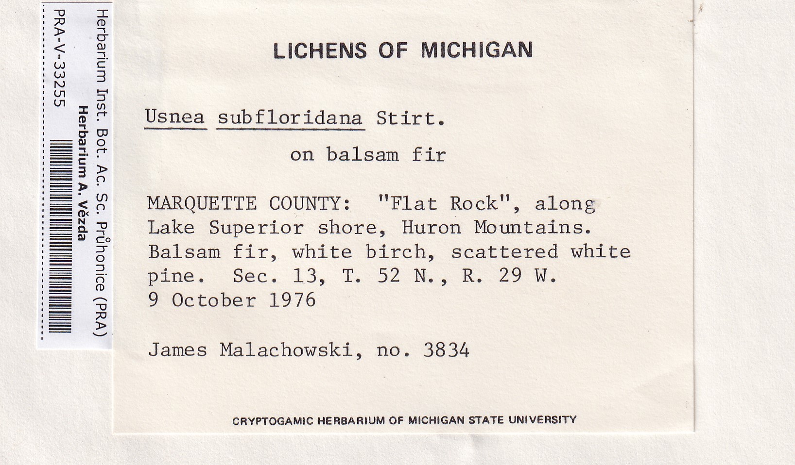 - Deposited in parcel no. 124 Usnea I-Y