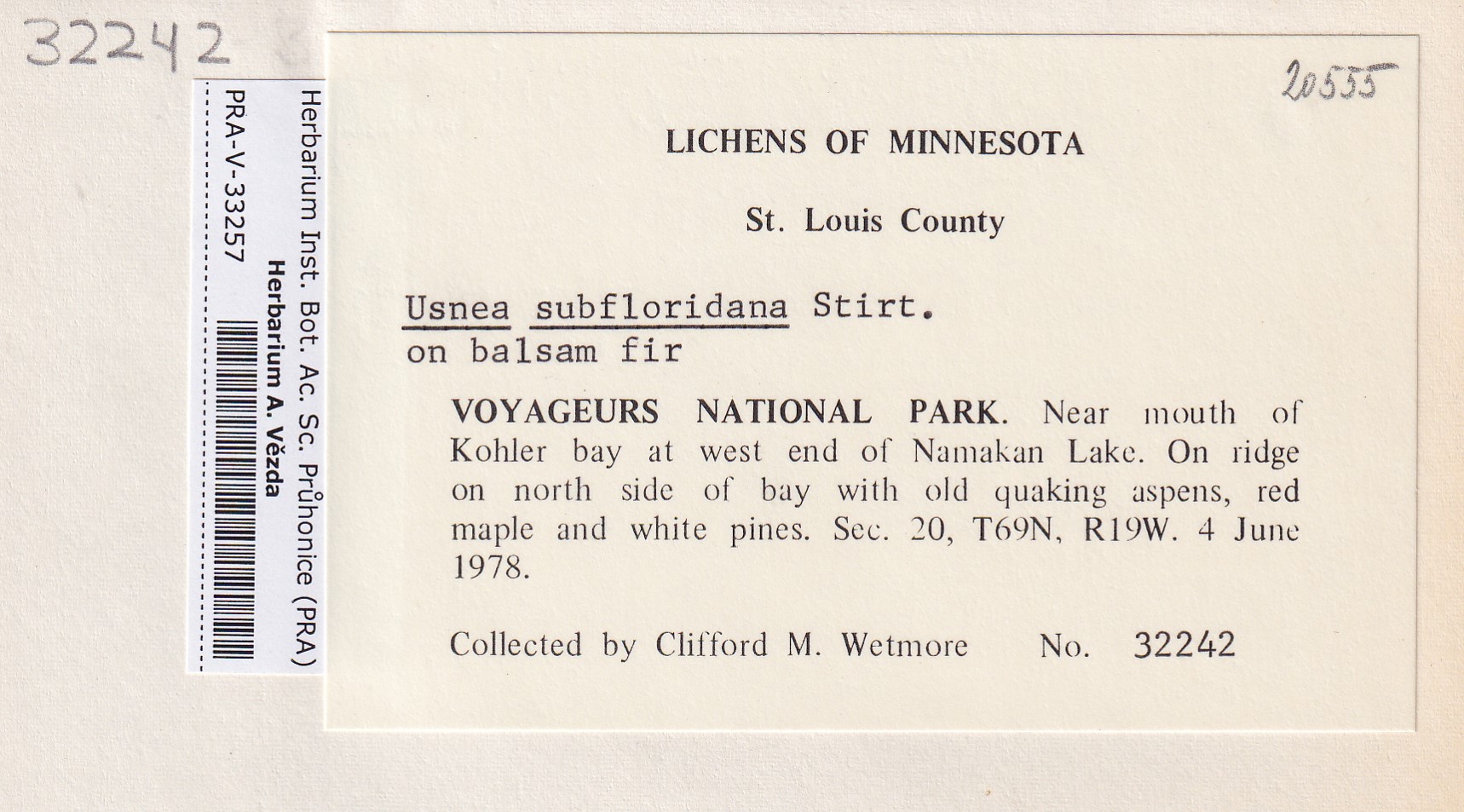 - Deposited in parcel no. 124 Usnea I-Y