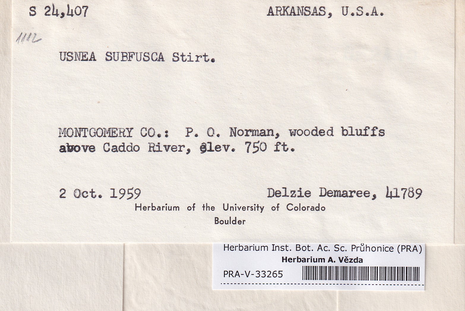 - Deposited in parcel no. 124 Usnea I-Y