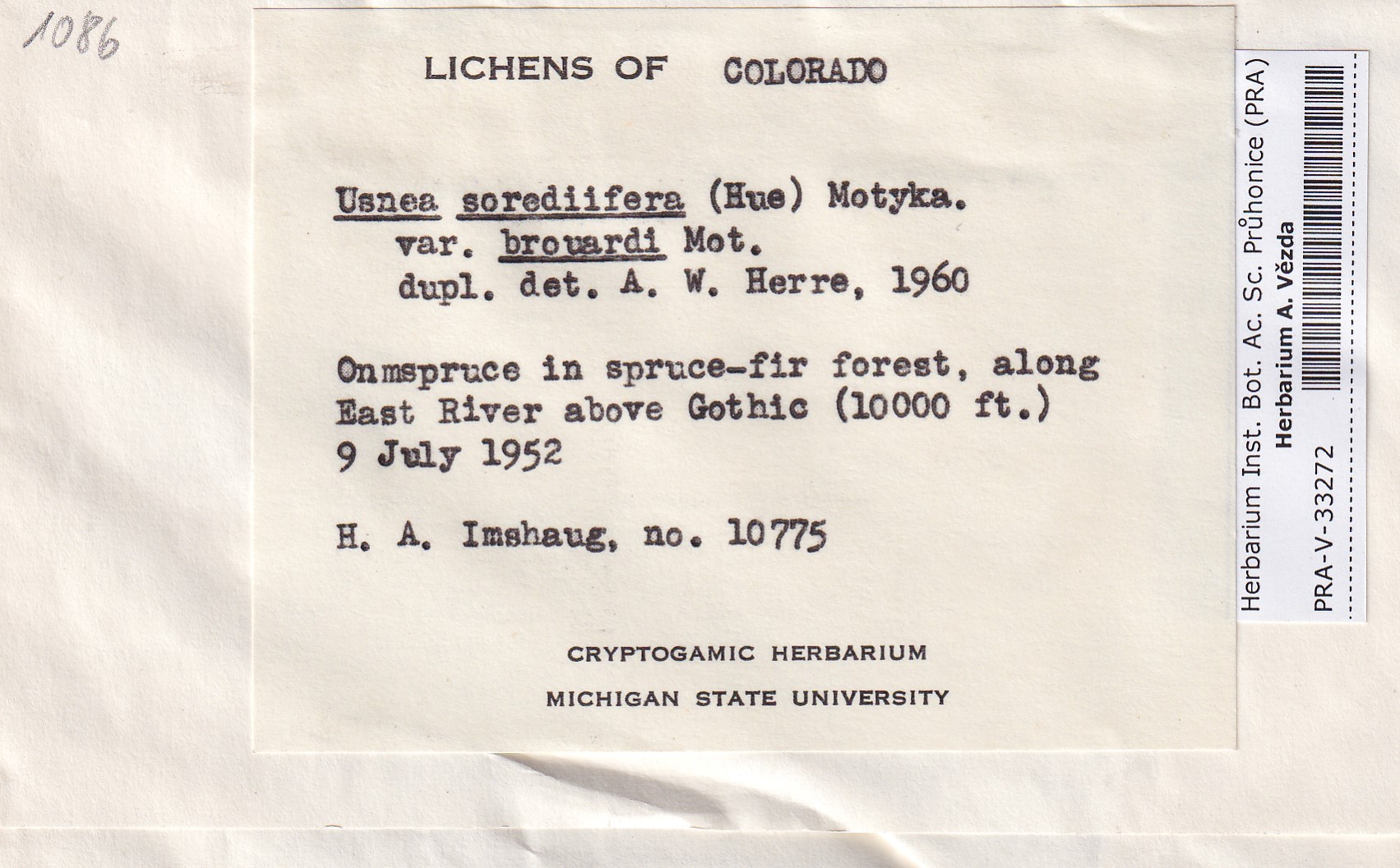 - Deposited in parcel no. 124 Usnea I-Y
