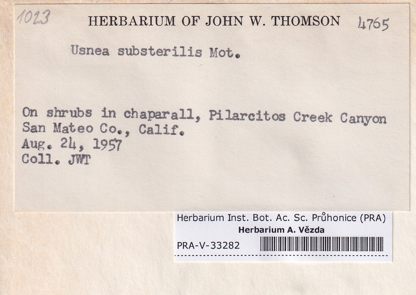- Deposited in parcel no. 124 Usnea I-Y