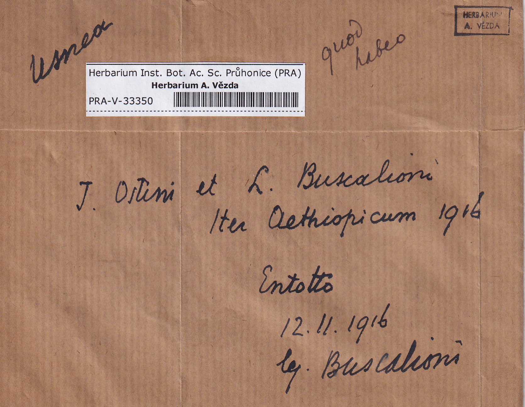 - Deposited in parcel no. 124 Usnea I-Y