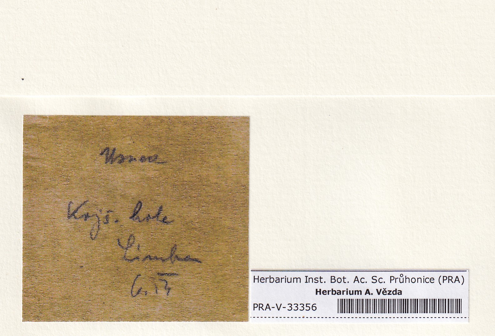 - Deposited in parcel no. 124 Usnea I-Y
