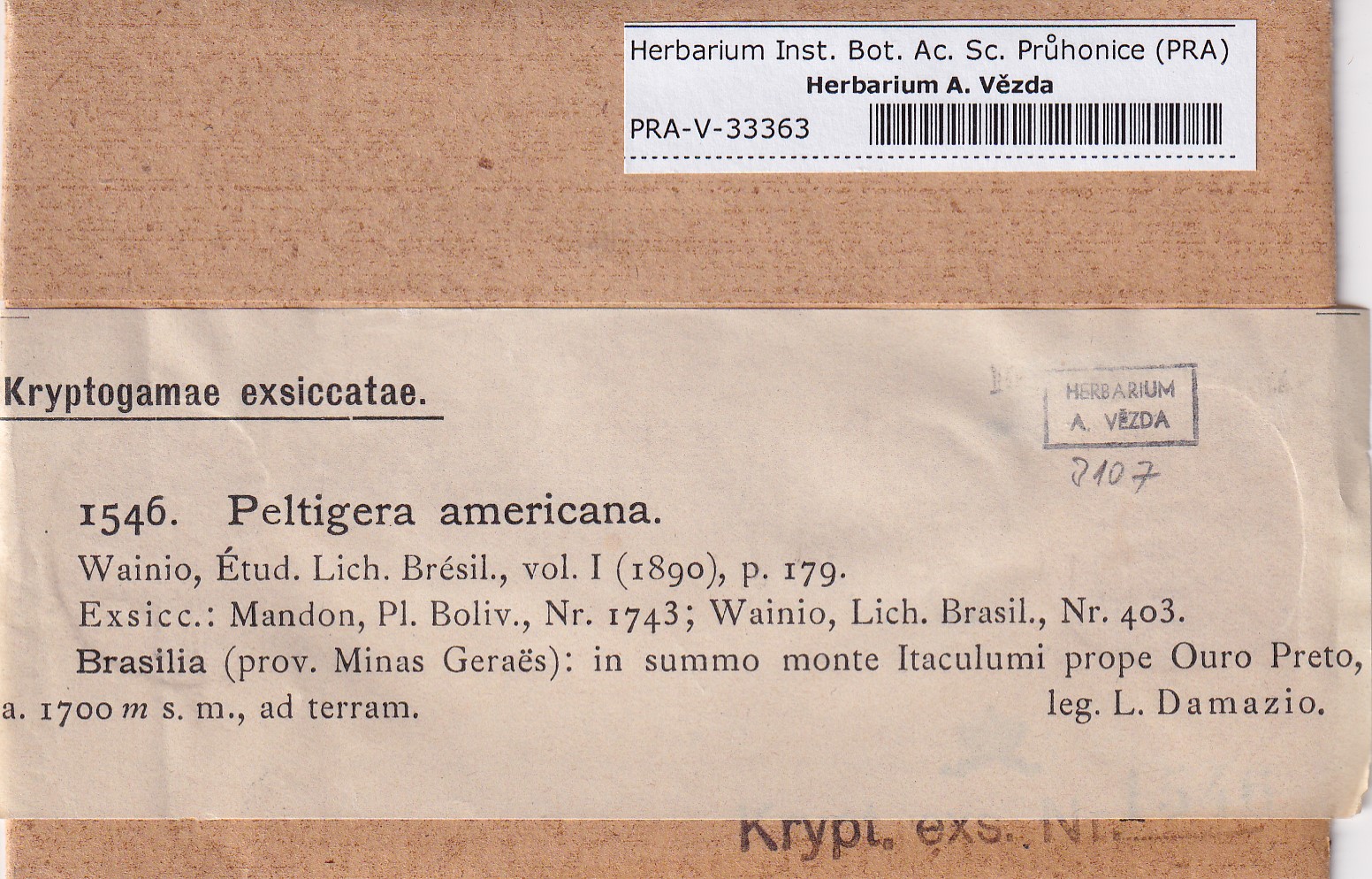 - Deposited in parcel no. 163 Peltigera