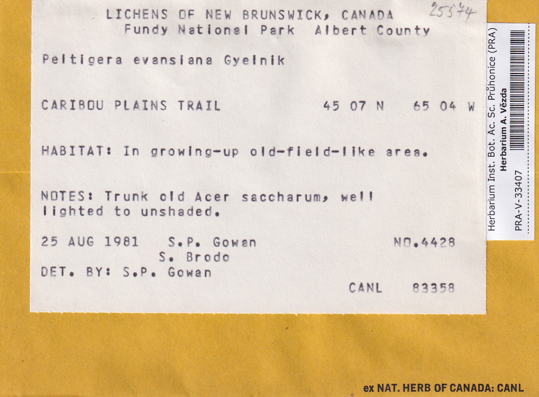 - Deposited in parcel no. 163 Peltigera