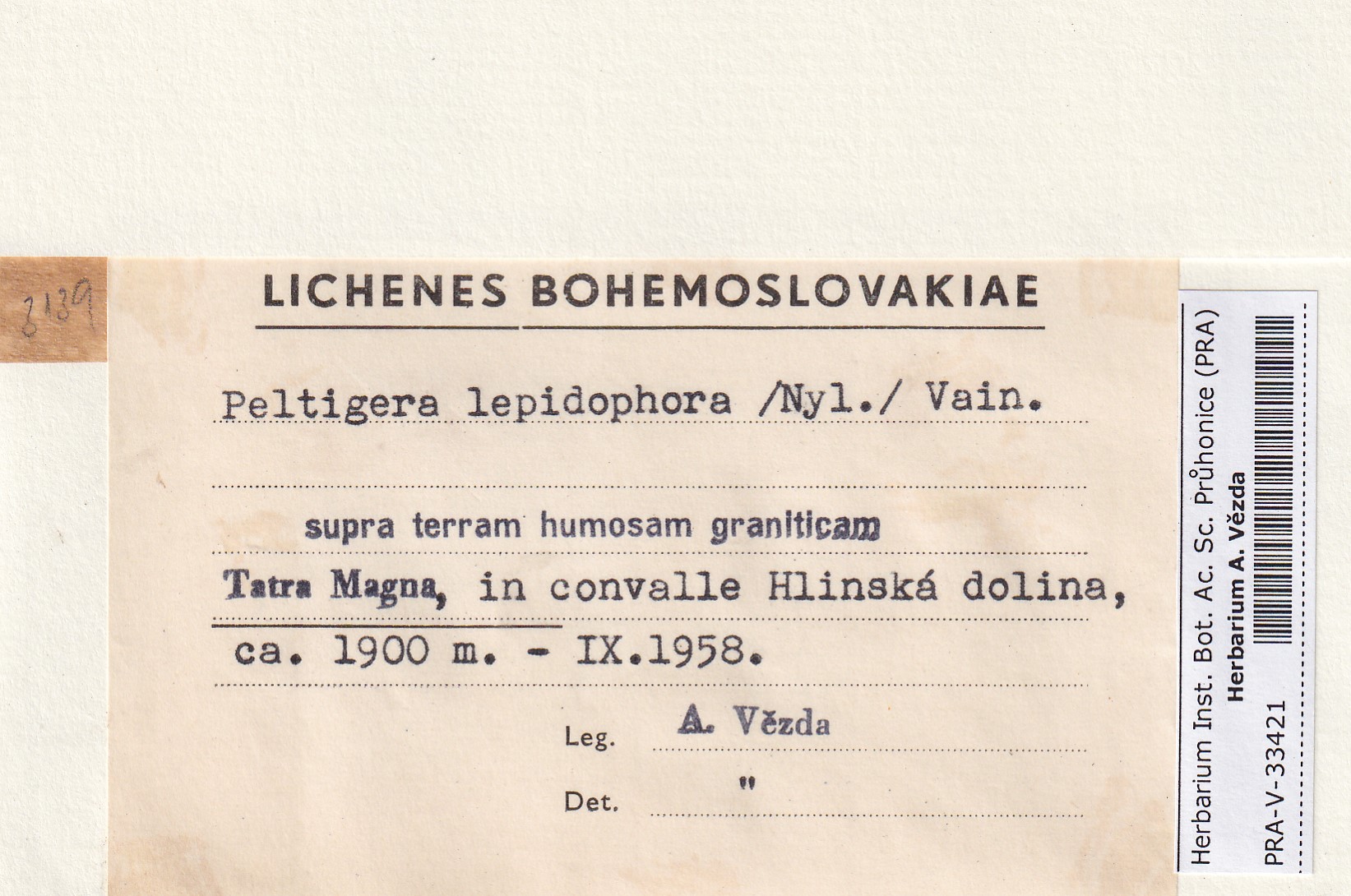 - Deposited in parcel no. 163 Peltigera