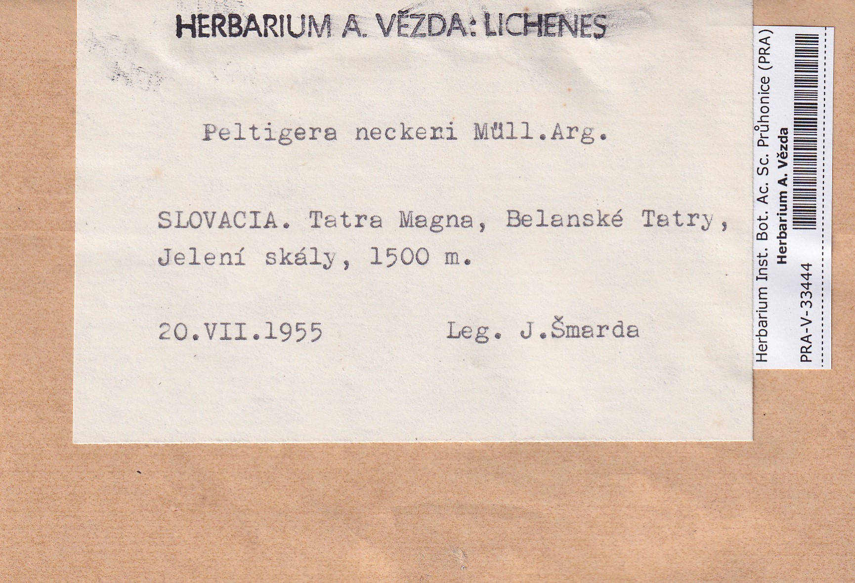 - Deposited in parcel no. 163 Peltigera