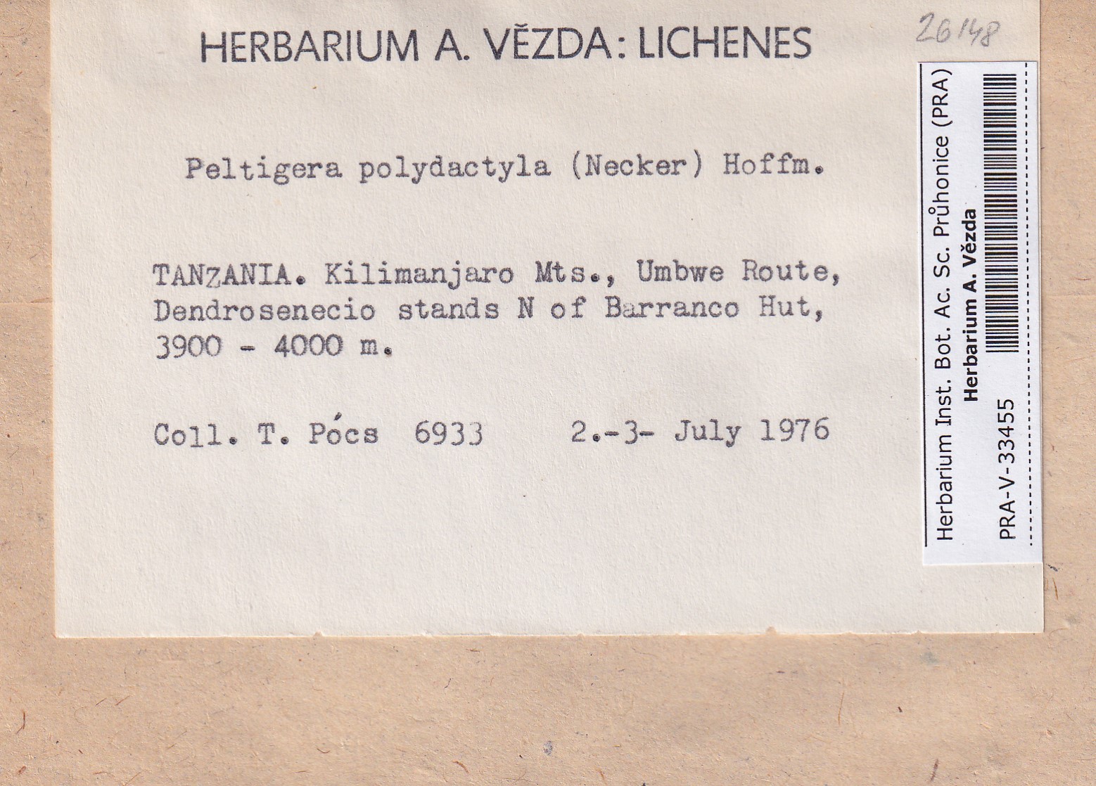 - Deposited in parcel no. 163 Peltigera